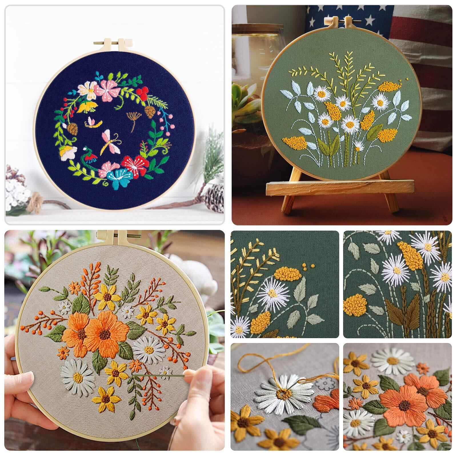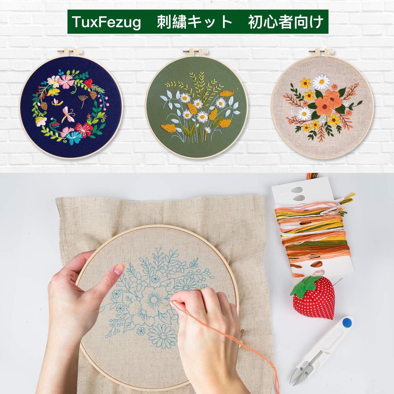TuxFezug 刺繍キット 刺しゅう 手作り 刺繍セット DIY クロスステッチ 刺繍工具 ししゅうキット 初心者セット 刺繍枠 刺繍糸 刺繍針 刺繍用布 はさみ おしゃれ 贈り物 日本語取り扱い説明書 (マルチカラー 花と葉 3セット)