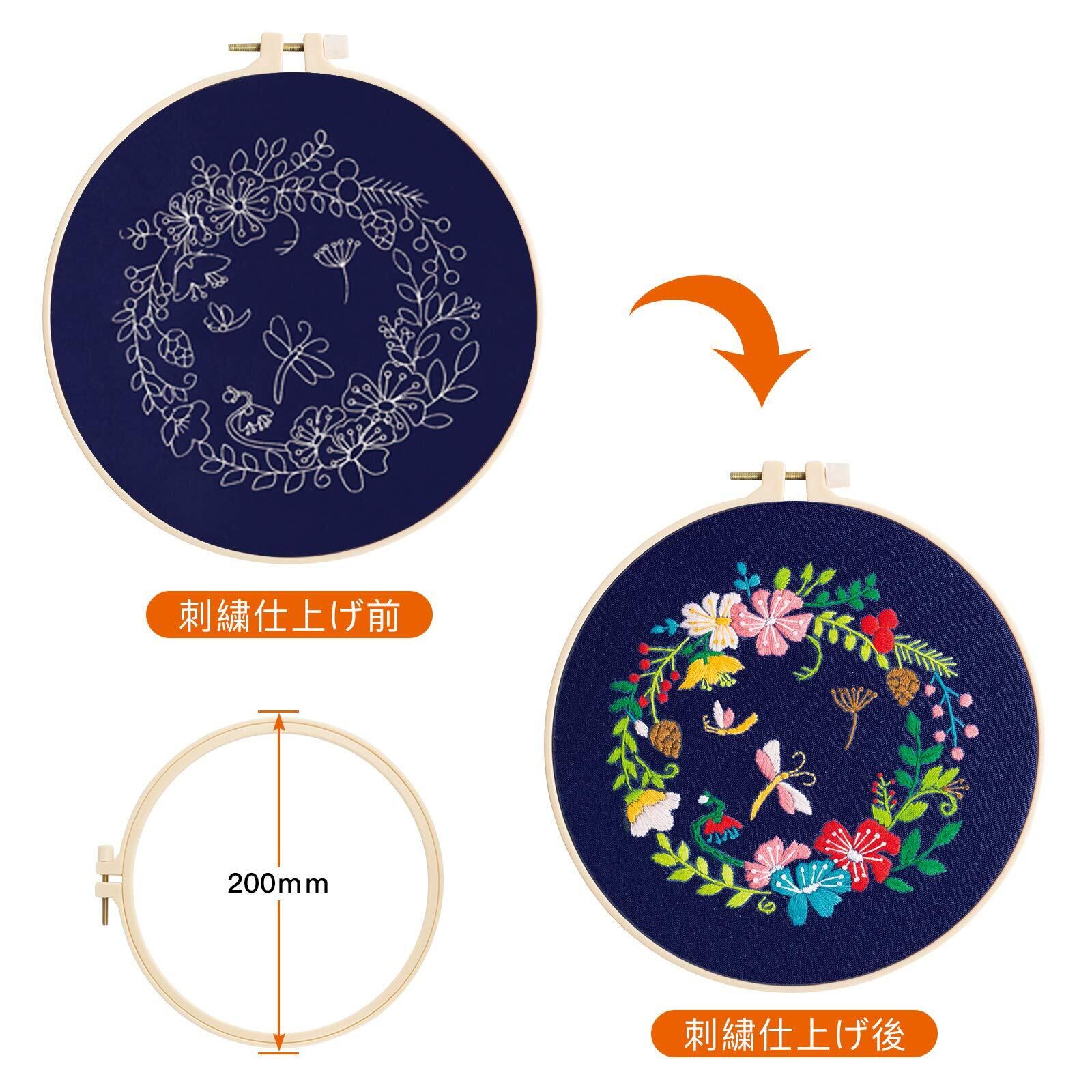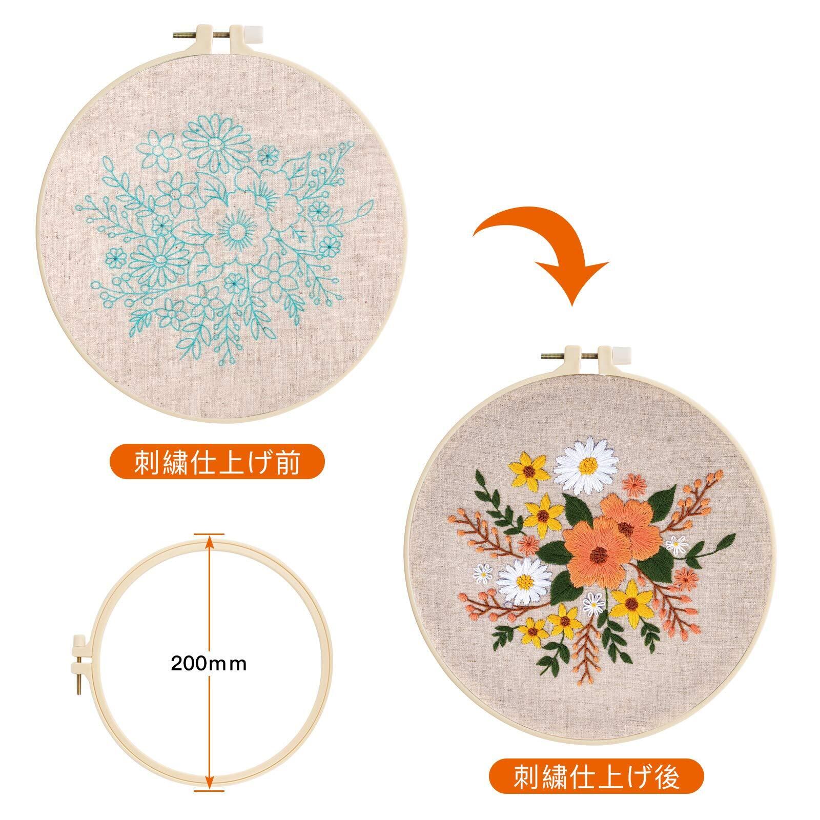 【刺しゅうキット内容】手芸ししゅうセット3枚(刺繍布3枚パタン、刺繍糸3セット、刺繍枠3セット(内径約20cm)、刺繍針6本、はさみ1個、梅花型糸通し1個、いちご型のピンクッション1個、おしゃれな袋おまけ1個、日本語説明書3枚)ご注意:この人気DIY刺繍工具製品は未完成品ですが、素敵な刺繍が仕上げます。