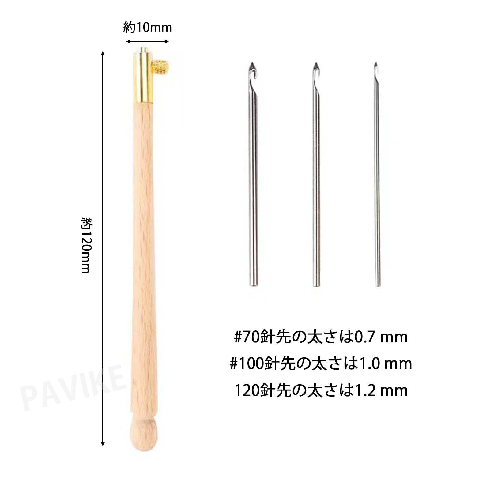 仕様:パンチニードルセットには3つの仕様の針管が含まれており、ハンドル×1本、替針×3本(針先0.7mm & 1.0mm & 1.2mm。針長約3cm ;シャンク約11.3cm。
