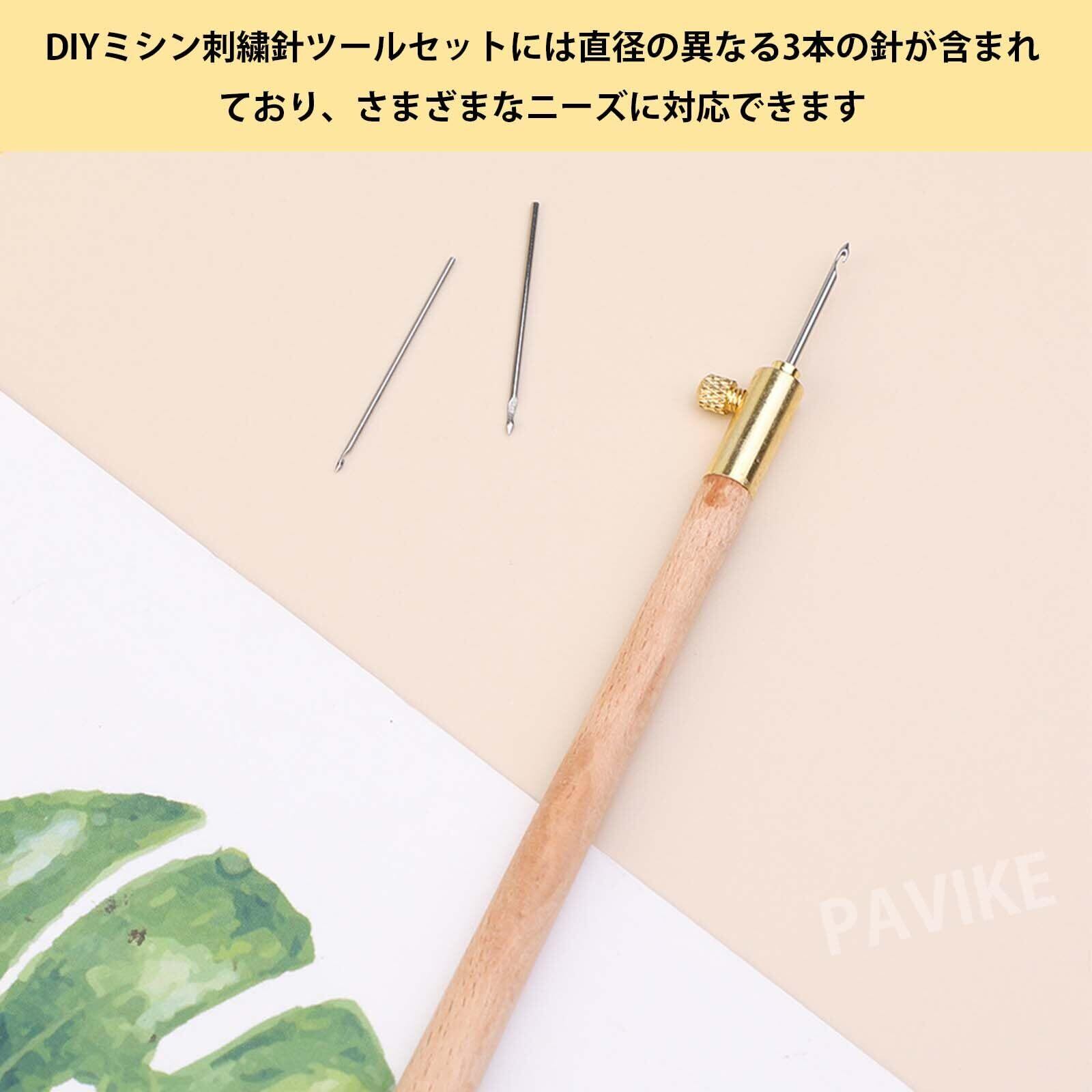 PAVIKE 編み刺繍ビーズかぎ針 3本セット 刺繍ビーズかぎ針 ニードルペン 刺繍ペンキット 刺繍ニードルパンチ パンチニードル キット調整可能フリーステッチ 糸通し付き DIY 握りやすい ハンドメイド 毛糸用 手芸用 裁縫道具 編み物用品
