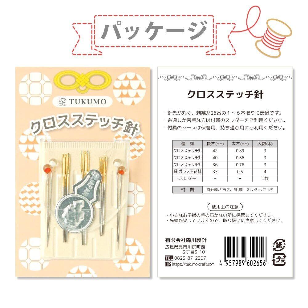 TUKUMO クロスステッチ針 3サイズ まち針付 シース付