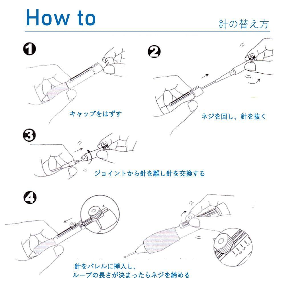 【簡単な針取り付け】 針管をハンドルに挿し、固定するだけなので初心者の方でも簡単です。