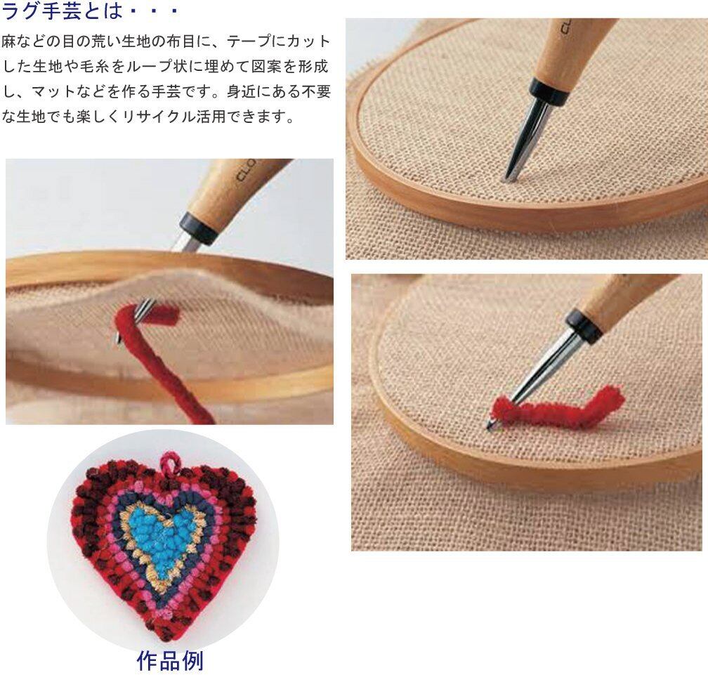麻などの目の粗い生地の布目に、細長くカットした布や毛糸をループ状に埋めて図案を形成し、マットなどを作る手芸です。