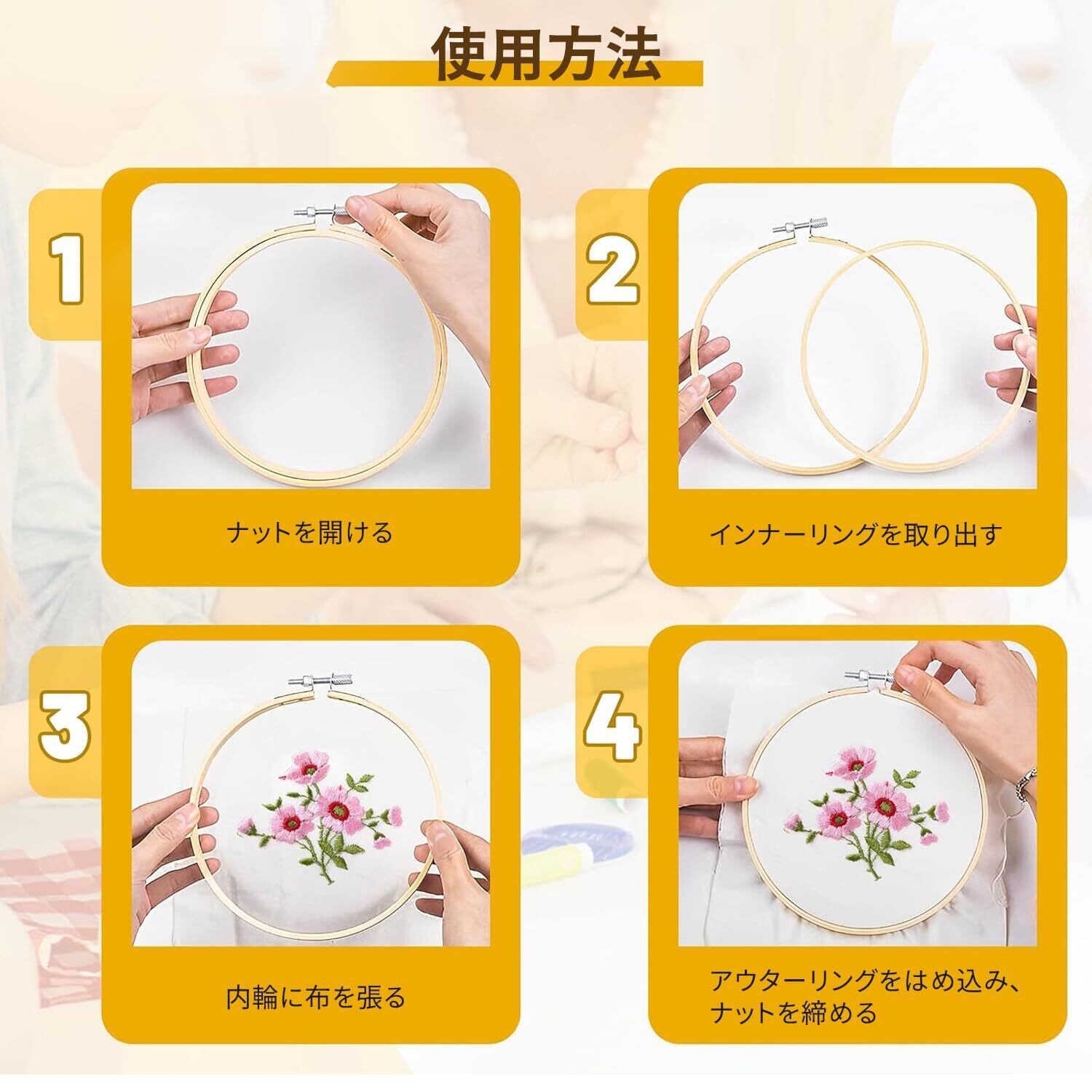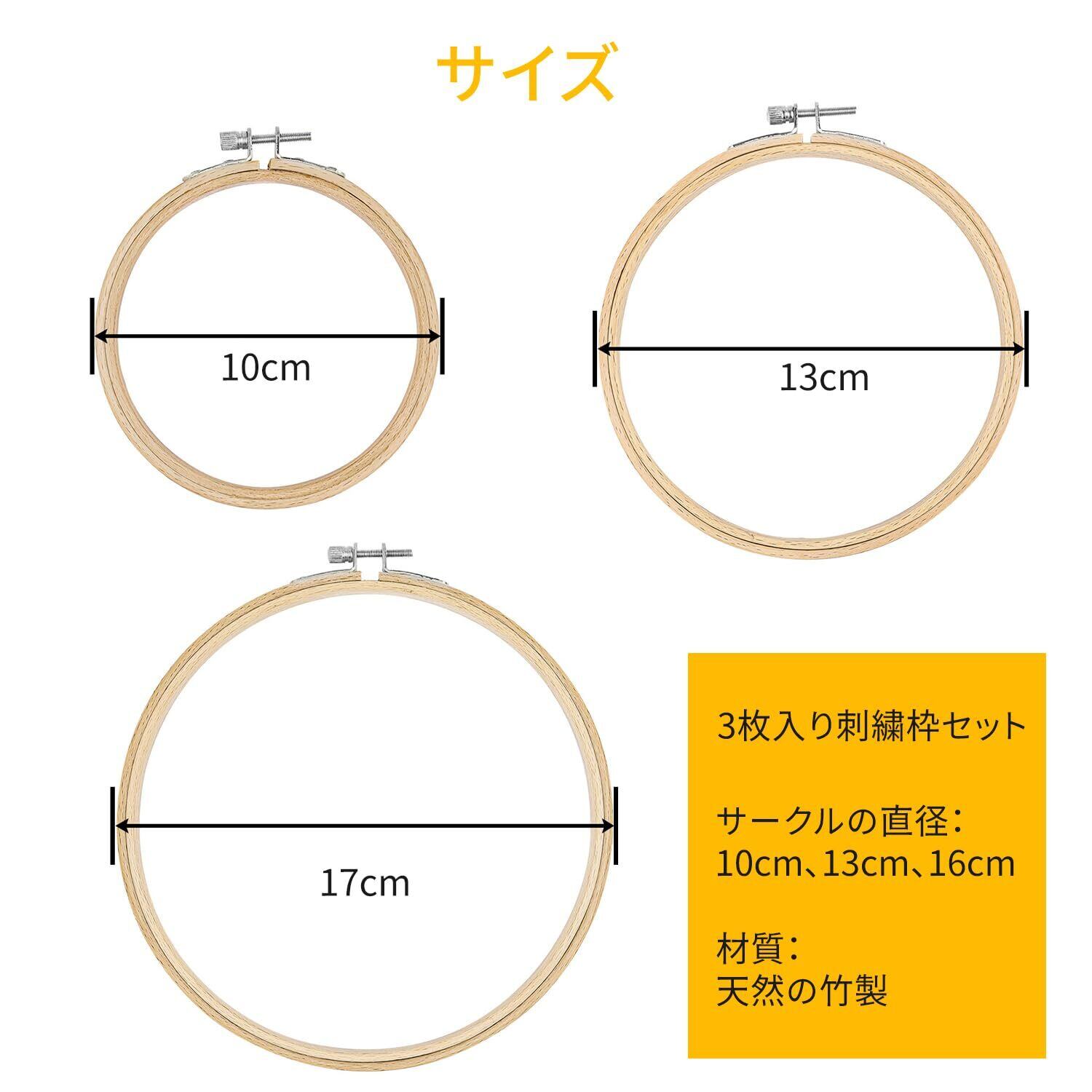 刺繍枠 10cm/13cm/17cm 3個セット 円形フレーム 刺しゅう枠 竹製 手芸用品 クロスステッチ 刺しゅう道具 初心者向け 簡単装着