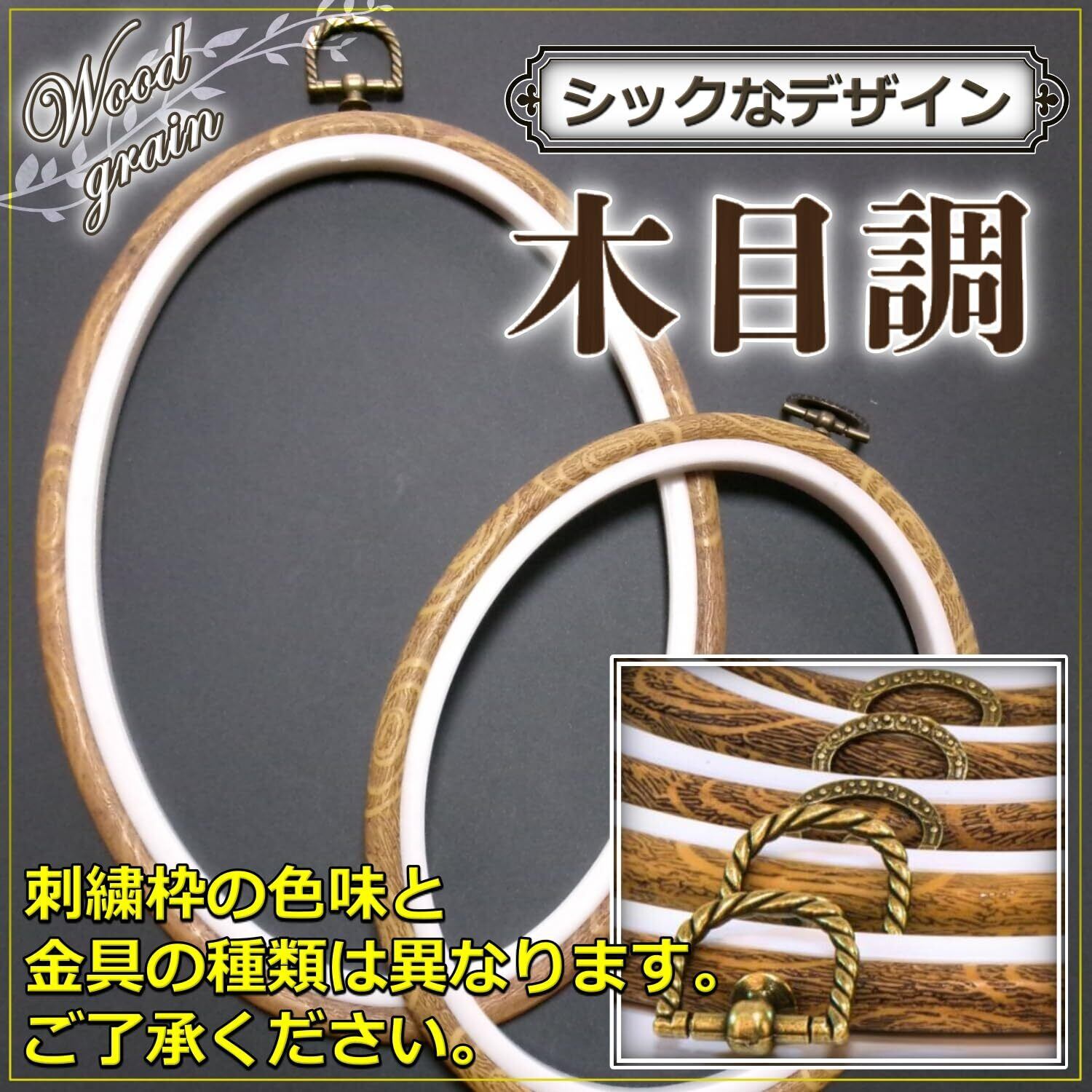 そのまま飾れる 刺繍枠 アンティーク風 八角 楕円 手芸用 刺繍フープ 刺しゅう リング フレーム (茶・楕円特大)