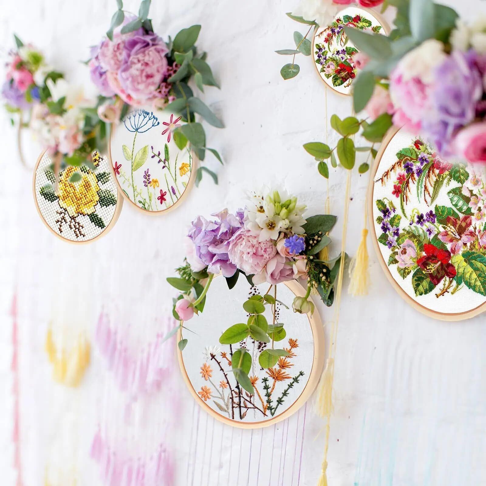 【幅広い用途】豊富なサイズ展開で、刺繍・クロスステッチ・裁縫・手芸・ペーパークイリング・ニードルワークなどに対応。壁掛け装飾、ウェディングデコレーション、リース、クリスマス飾り、ハンドメイド作品の装飾など、多彩な使い方が可能です。