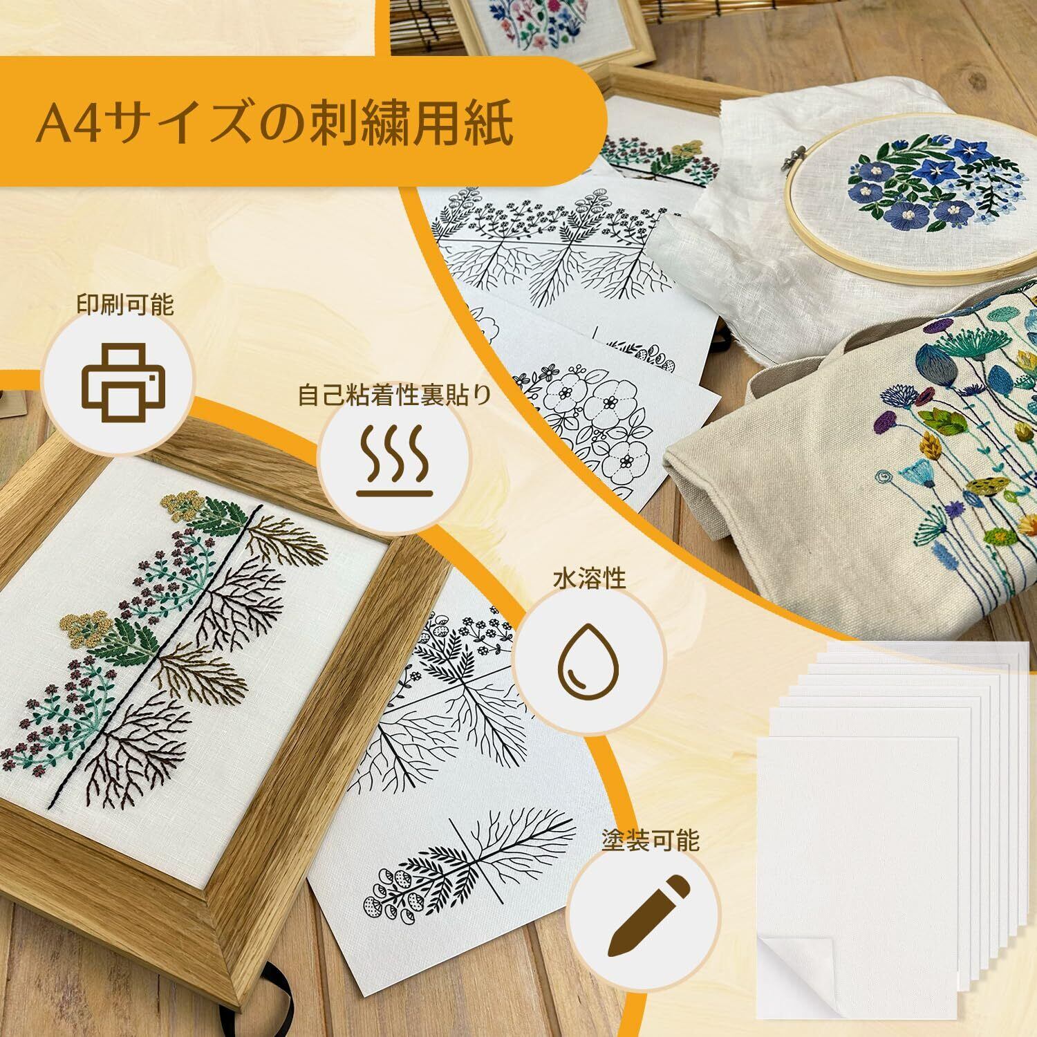 刺繍シート 刺繍下地用シート A4紙 8個入り/4個入り 210mm*297mm 水溶性 簡単使用 印刷可能 手芸用 刺繍紙 ハンドメイド刺繍パターン対応