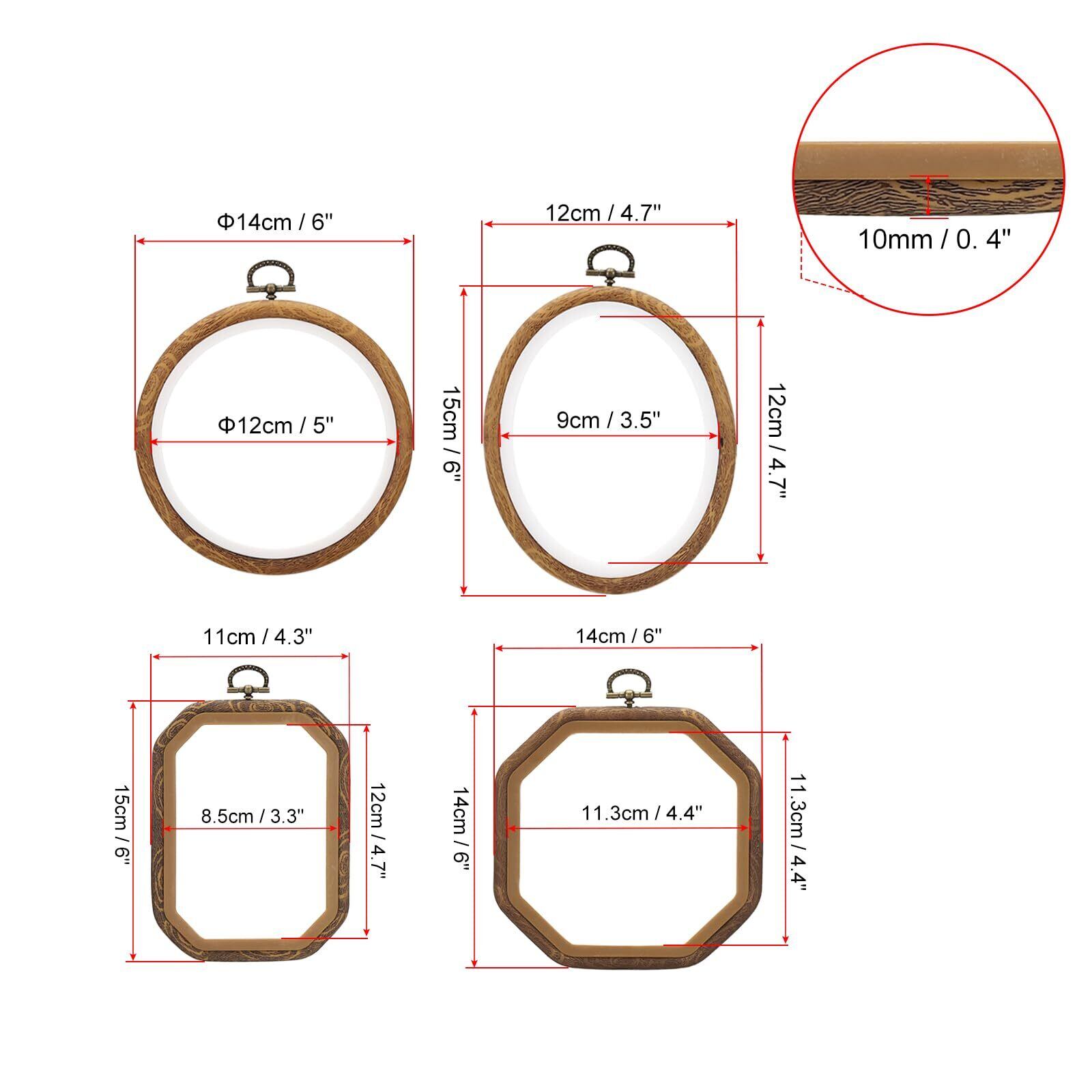 PATIKIL 混合サイズ刺繍フープセット4点(木目調丸型・楕円・八角形フレーム)クロスステッチフープリング+針付き 刺繍アートクラフト裁縫装飾用ハンギングデコレーション