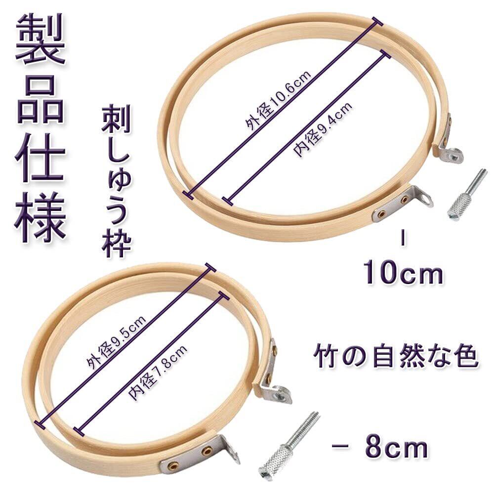 【製品仕様】刺しゅう枠;サイズ:8cm(内径7.8cm*外径9.5cm)、10cm(内径9.4cm*外径10.6cm);竹の自然な色