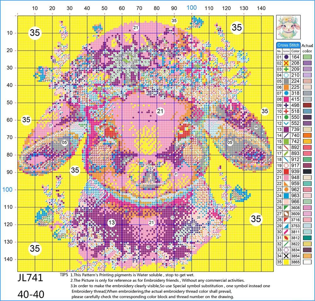 2. 印刷されたパターンの色は、糸の実際の色と等しくありません。 印刷されたパターンの数字または記号を使用して、特定の色に対応する糸を見つけてください。