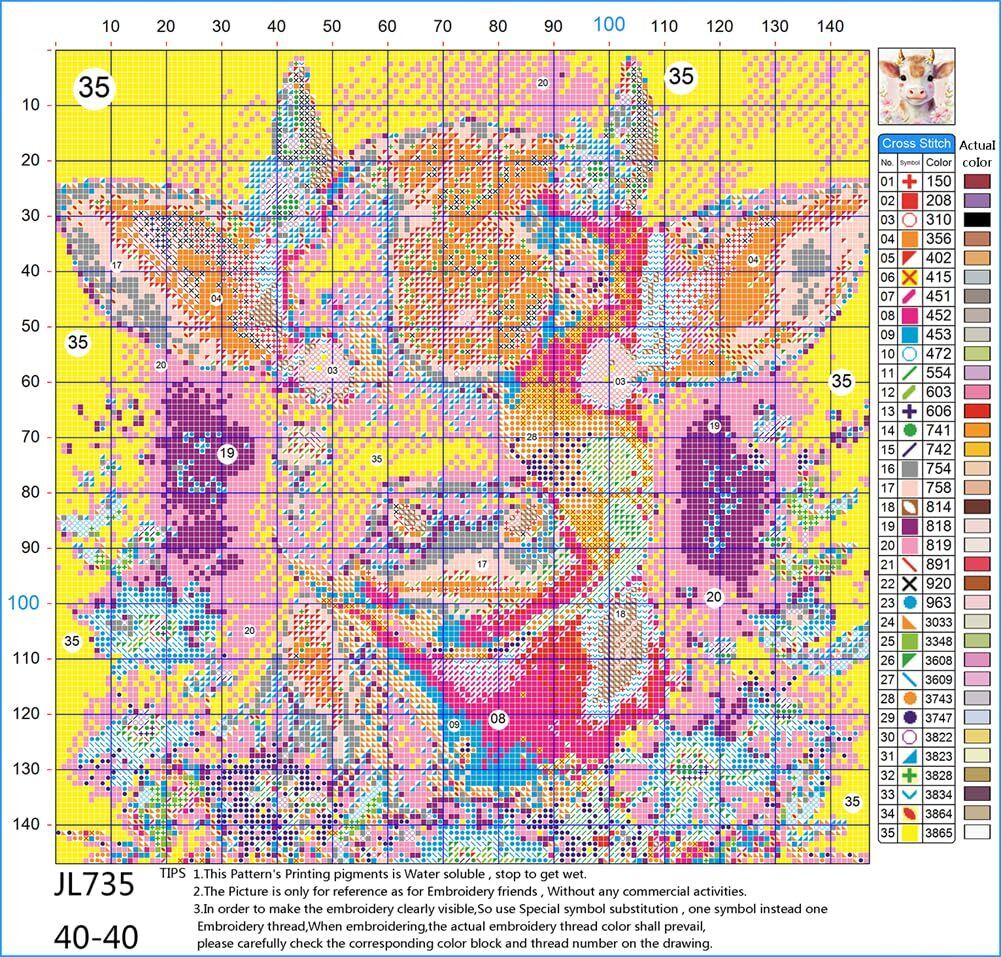 2. 印刷されたパターンの色は、糸の実際の色と等しくありません。 印刷されたパターンの数字または記号を使用して、特定の色に対応する糸を見つけてください。