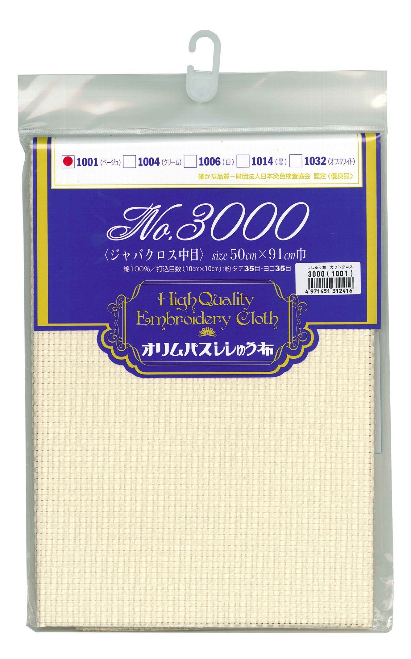 オリムパス製絲 刺繍布(約)91×50cmカット/No.3000ジャバクロス中目・ベージュ