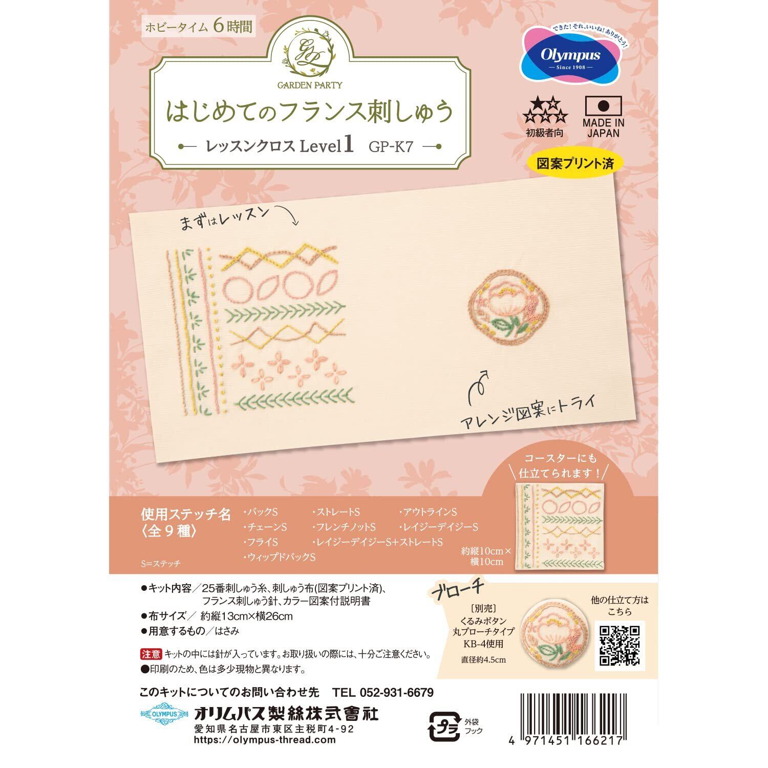 オリムパス製絲 刺しゅうキット GARDENPARTY はじめてのフランス刺しゅう レッスンLevel1 GP-K7