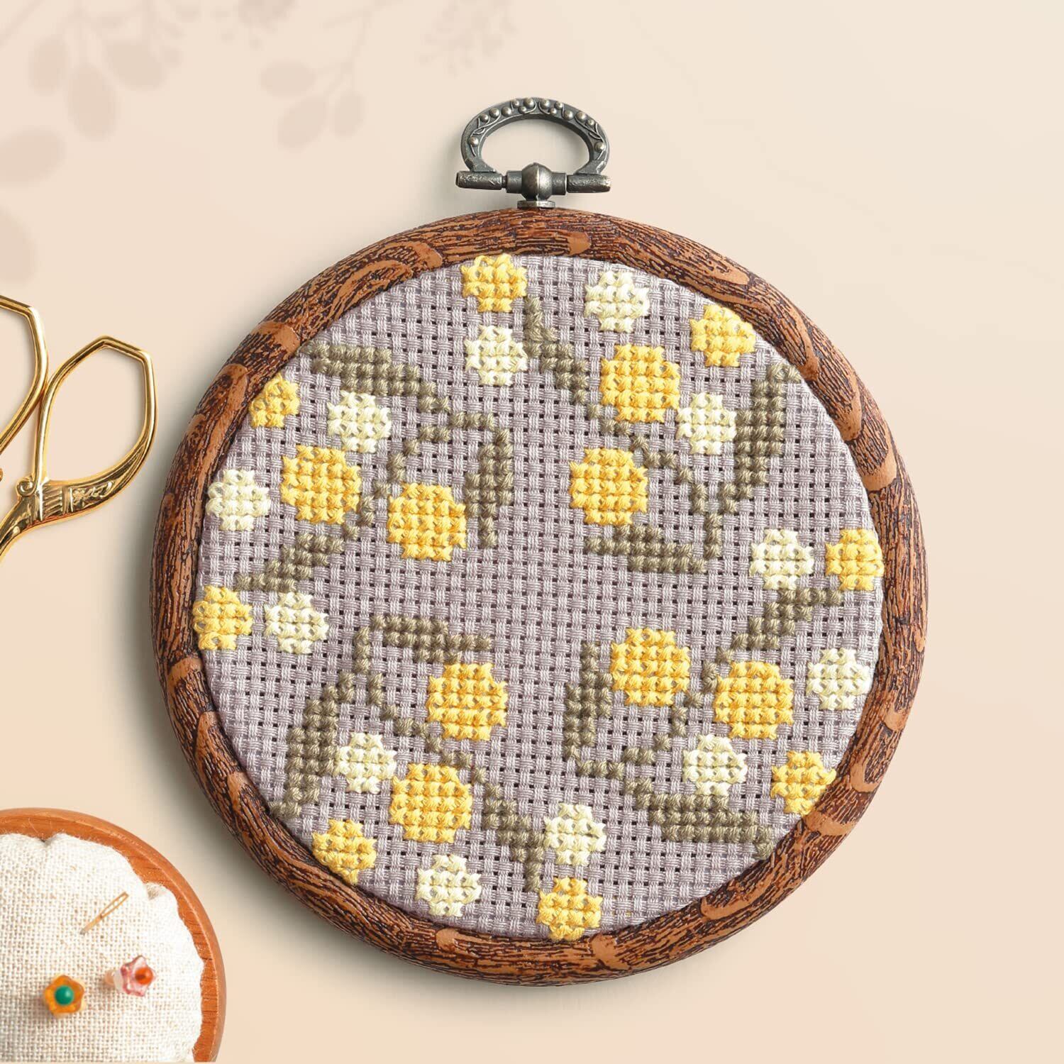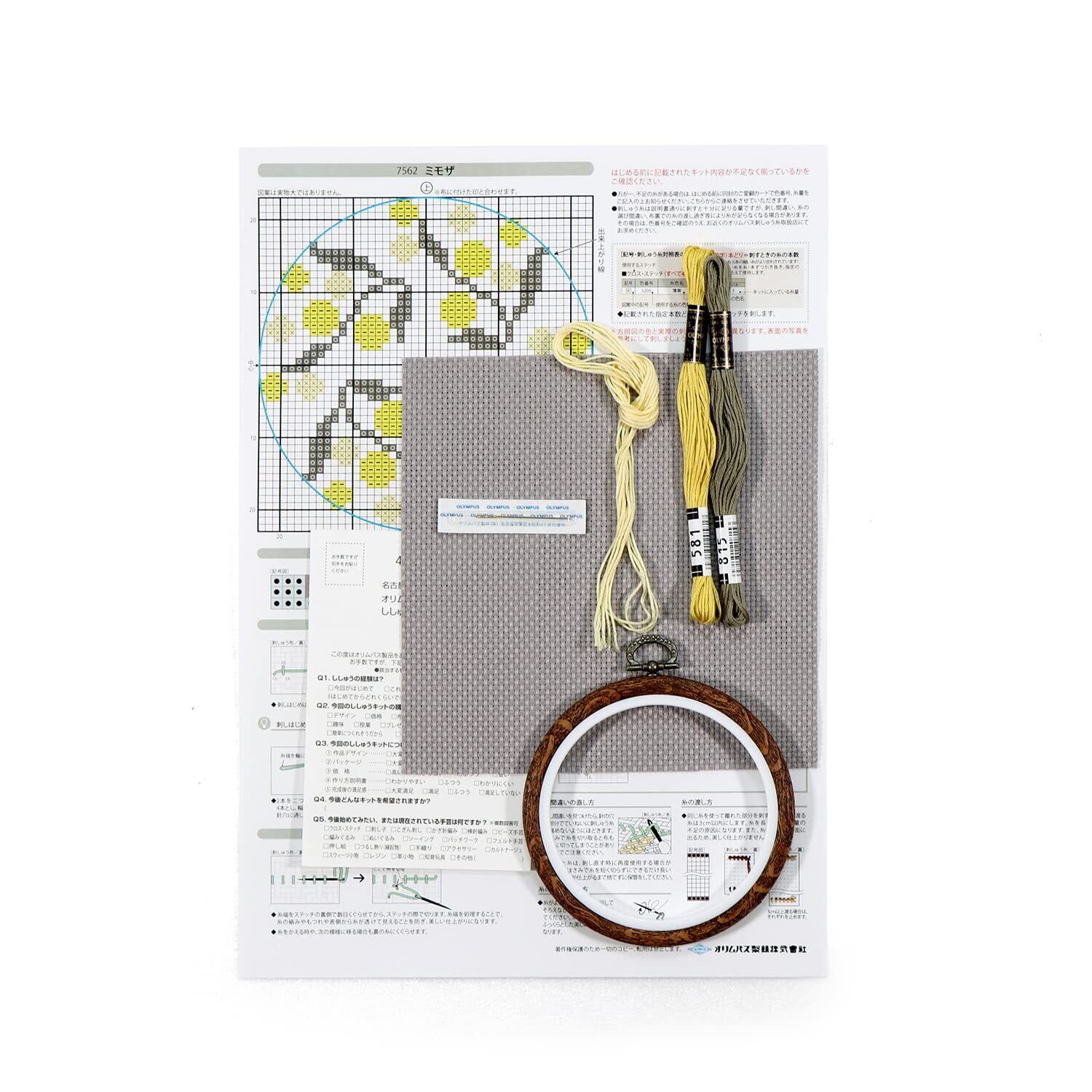 オリムパス製絲 クロスステッチキット &Botanical ミモザ 7562 専用フープ付