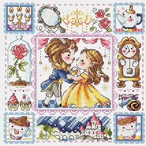 3219 クロスステッチ 刺繍キット世界名作劇場 世界のおとぎ話 美女と野獣 Beauty and the beast 14カウント白 30cm * 30cm 手作りクロスステッチキット