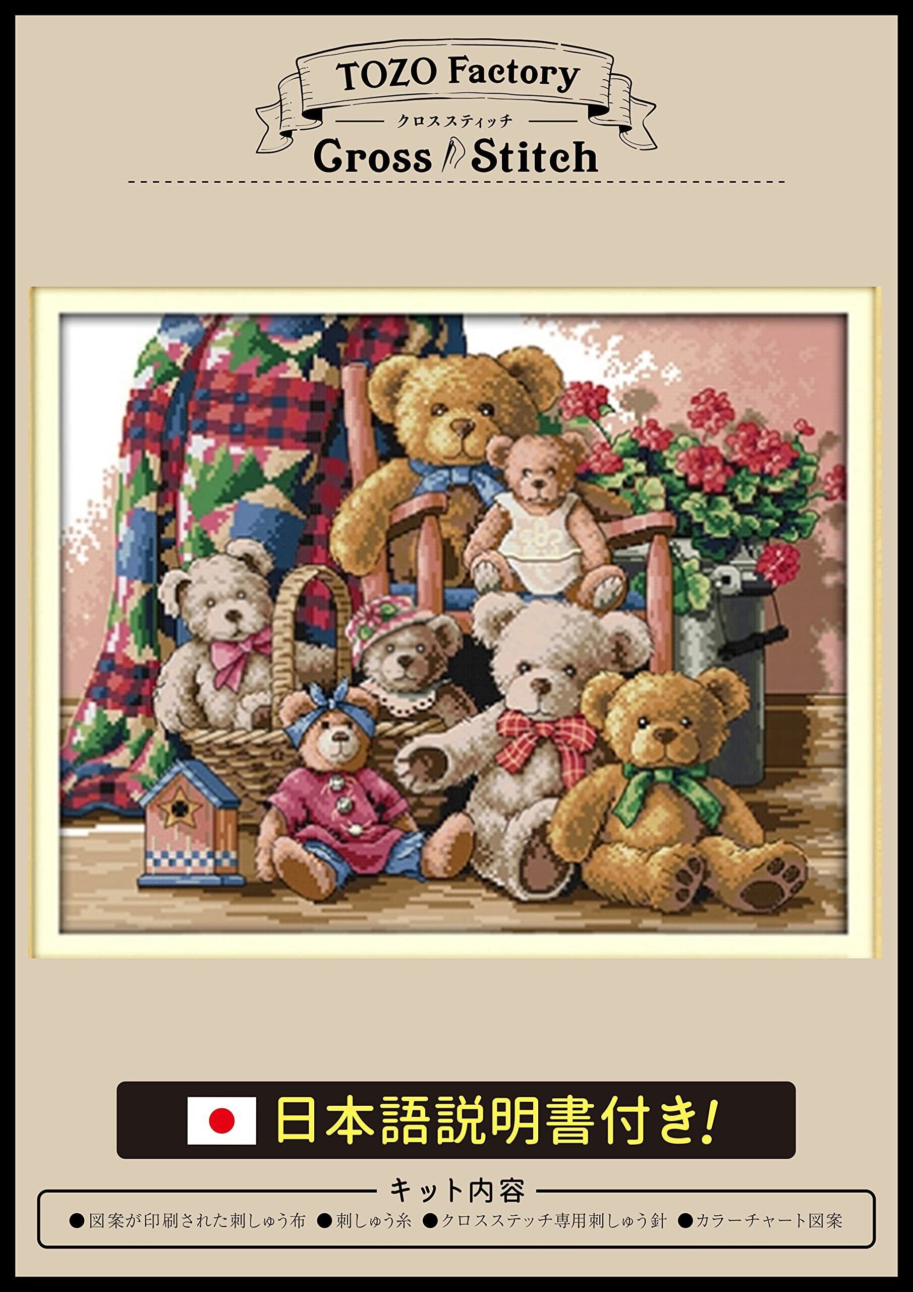(TOZOファクトリー) クロスステッチ 刺繍キット 刺繍 ししゅうキット 図柄印刷 日本語説明書付き 静物 14CT ぬいぐるみ テディベア
