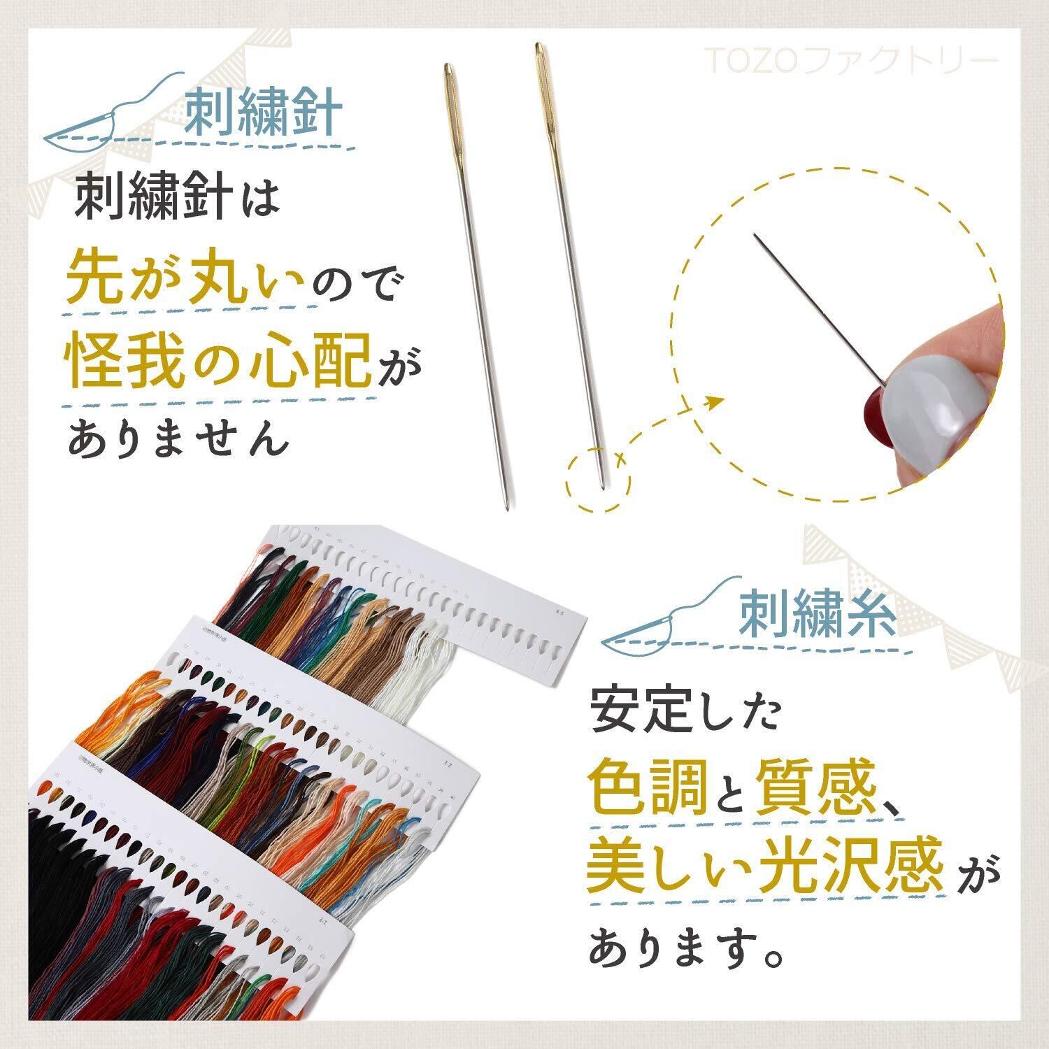 綿素材 布製 クロスステッチキット。必要なアイテムが全て揃っています。
