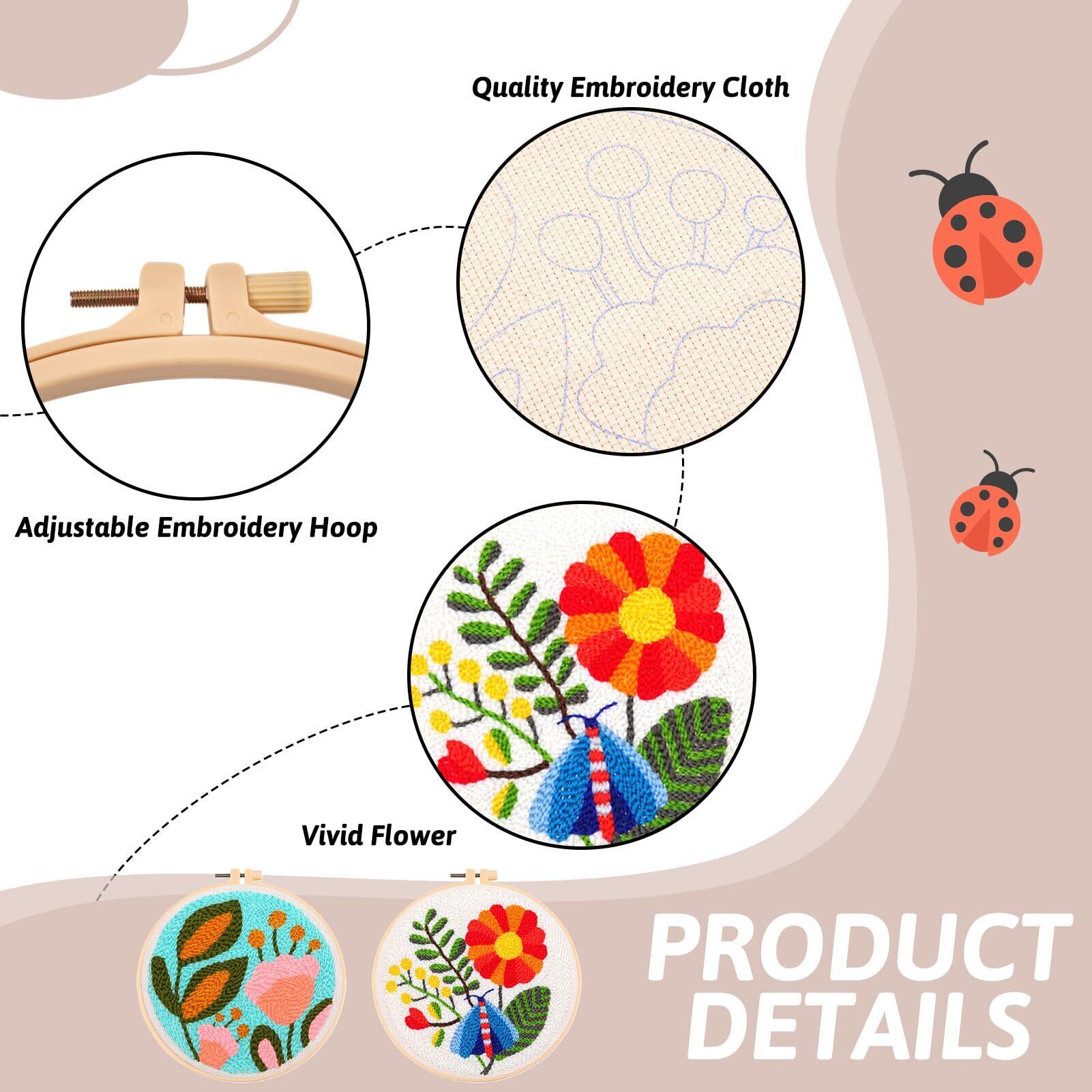 【特価セール】Beadthoven パンチニードル刺繍キット 初心者 2セットパック かわいい花柄 ニードルパンチ 刺しゅう フリーステッチングニードル ペン刺繍パンチニードル クロスステッチキット 針仕事工芸 DIY手芸クラフト材料セット 手作り 装飾 ギフト プレゼント