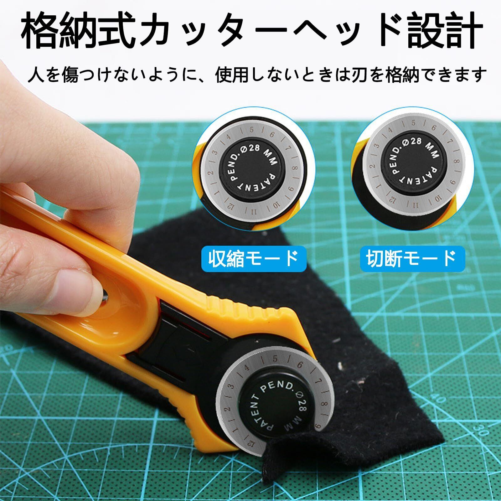 ロータリーカッター 45mm 回転 丸刃 裁縫用ロータリーカッター 左手右手 兼用 ワンタッチレバー付き 耐久性 布地 生地 洋裁紙 手芸 DIY クラフト用品 カッター