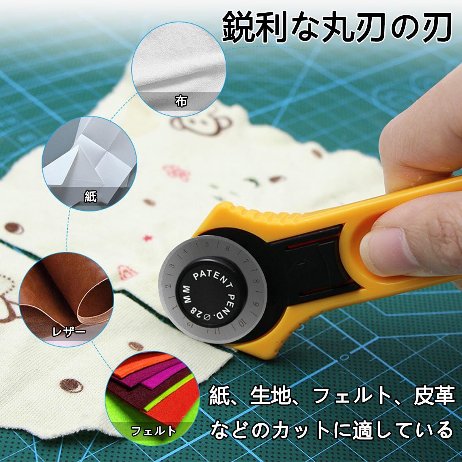 【幅広い用途】このディスクロータリーカッターは、縫い目、布や紙、DIY、薄いゴムシート、フィルムなどの切りにくい素材をランダムにカットすることができます。家庭での裁断、手作りDIY、専門的な製作に関係なく、この裁布円形カッティングナイフは理想的な選択肢です、使いやすく、裁断ツールボックスに欠かせないツールです。