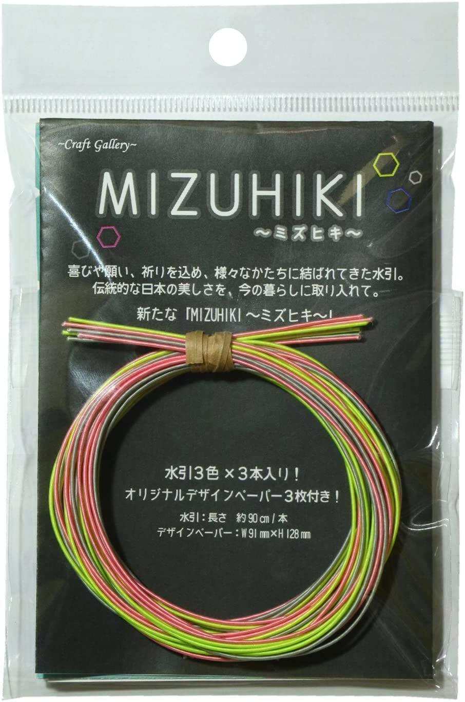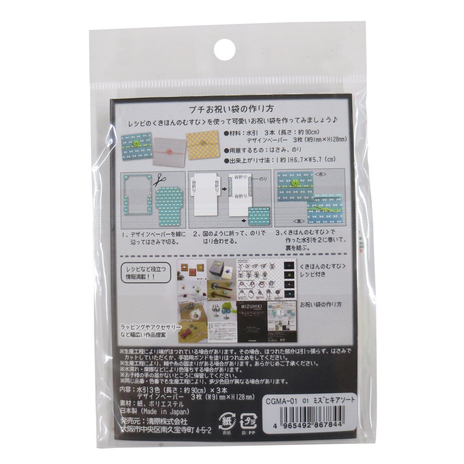 【特価商品】KIYOHARA Craft gallery MIZUHIKI ミズヒキ 3色 3本 アソート 約90cm/本 レシピ デザインペーパー 付き 薄墨×さんご×黄緑 CGMA-01/01