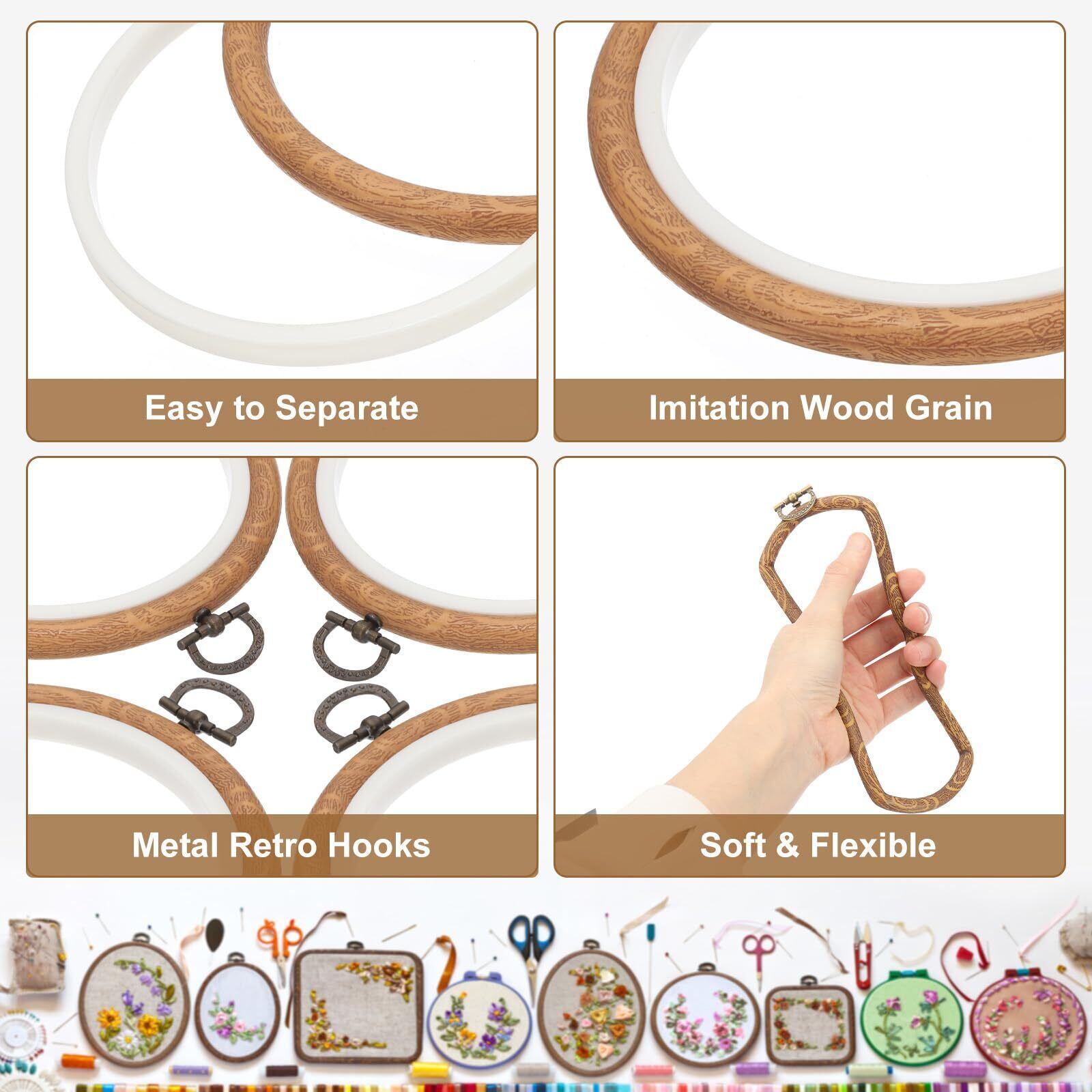 当社のクロスステッチフープフレームはPVCプラスチック製で、耐久性があり柔軟性があり、良好な圧縮抵抗性を持ち、外部樹脂フープは良好な弾力性を持ち、「8」の形に簡単にねじれて元の形に戻ることができます。レトロな真鍮製吊りリングに木目が施されており、手芸をより精巧にし、滑り止めのテク スチャが快適なグリッ プを提供します。