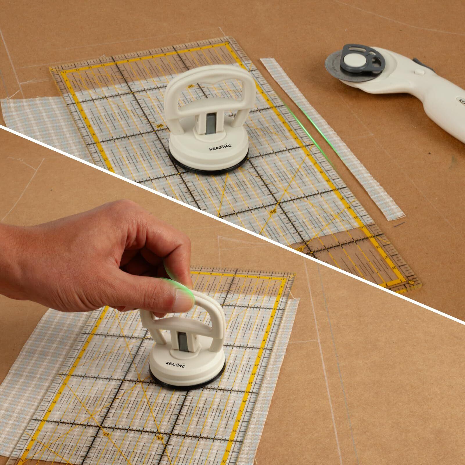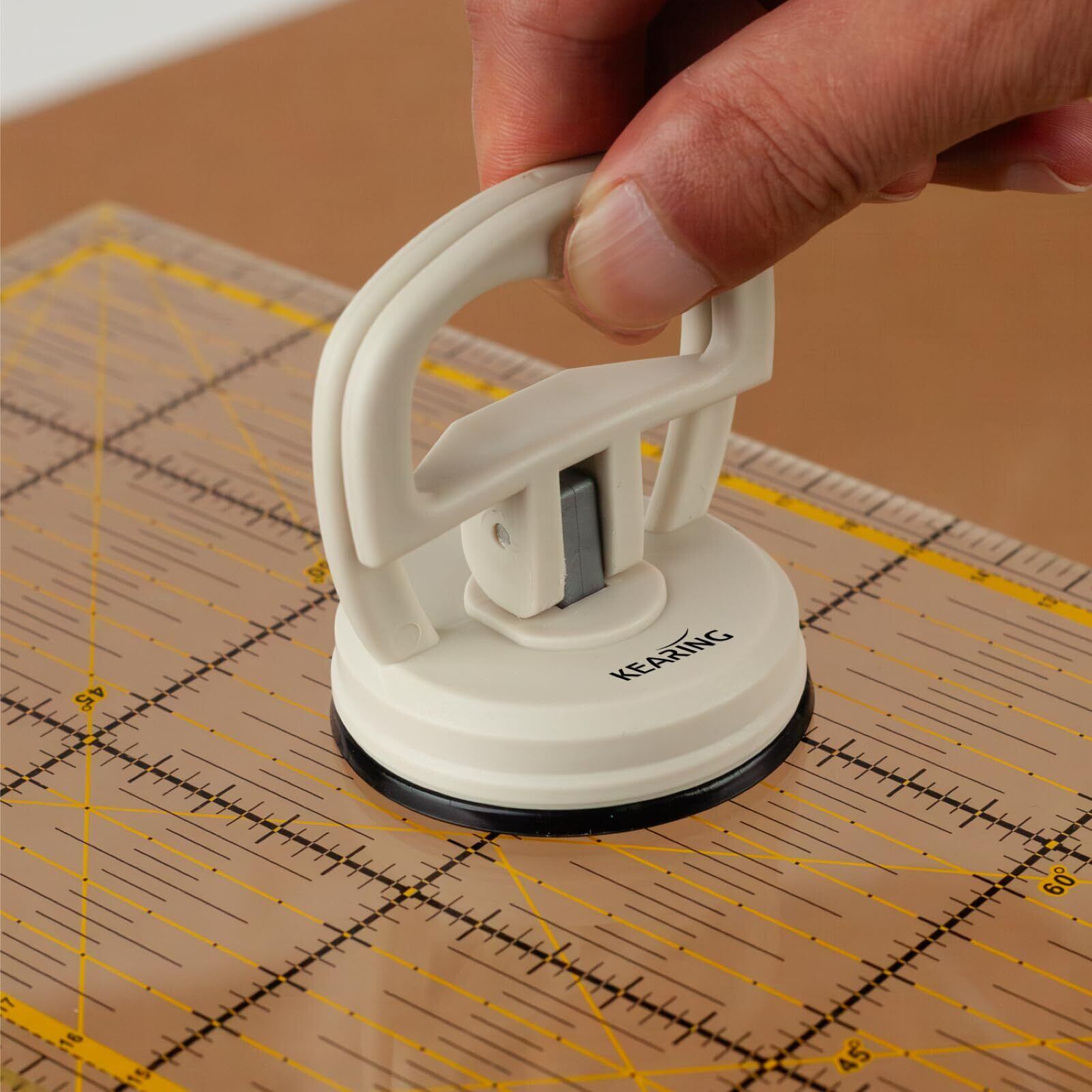 強力吸着の定規ハンドル キルティングやパッチワークに最適な、ヘビーデューティーな吸盤付き定規ハンドルです。工業用プラスチックと分厚いゴム製で、超強力な吸引力と長寿命を実現。ガラス、プラスチック、窓、ドアなど、あらゆる滑らかで平坦な非多孔質の乾いた表面にしっかり吸着します。使い方は簡単で、吸盤を当ててタブを押すだけ。12kgの耐荷重を誇るその吸着力は、裁縫や手芸プロジェクトの心強い味方となるでしょう