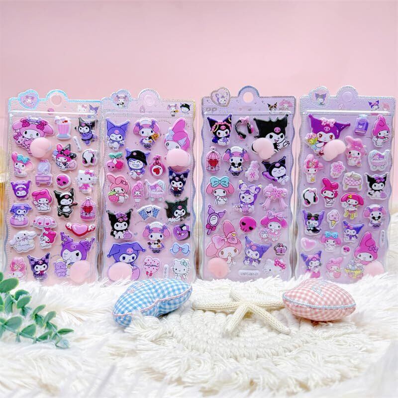 2個 おしりぷにぷにシール クロミ かわいいキャラクター 可愛い 立体 ごほうびシ ー ル、ご褒美シー ル デコレーション、女の子向け プランナー・ノート・スマホ・ウォーターボトル装飾用 3D浮き立つ漫画風レリーフステッカー (A)