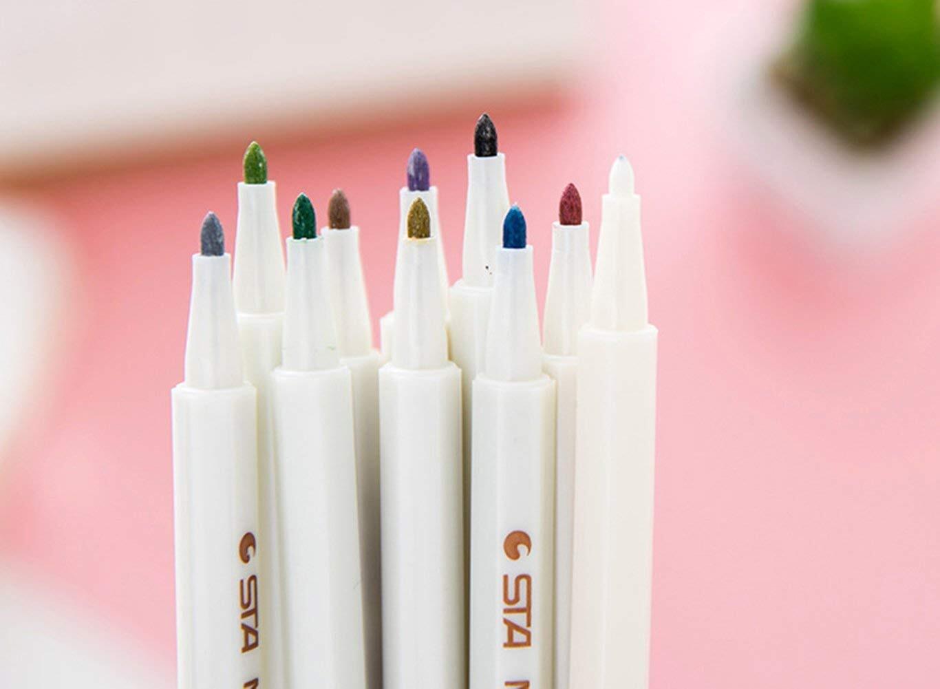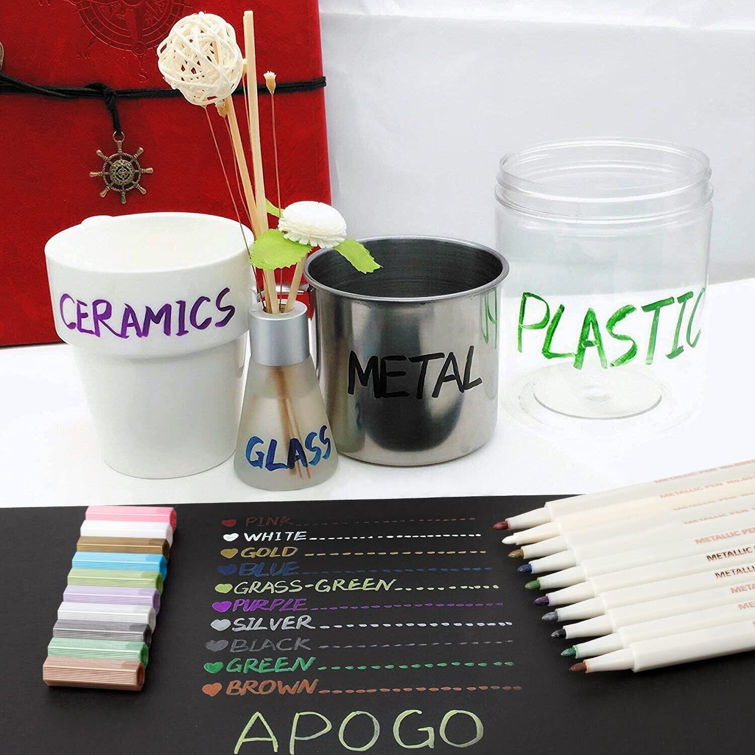 AKARUED メタリック マーカーペン 10色セット 水性 カラーペン サインペン DIY サプライズボックス アルバム 手作り カード 年賀状 ガラス 木材 陶芸 フォトなど まざまな用途に適用
