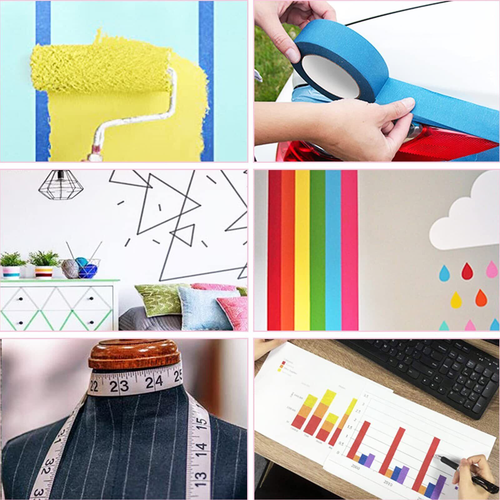 ✨【完璧な接着、簡単取り外し・貼り直し】他のマスキングテープに比べて、こちらのカラーテープは完璧な粘着力を持っています。粘着残留物や表面へのダメージがなく、付着や剝離が容易です。強力なマスキングテープは、プラスチック、ガラス、紙、金属、セラミック、キャンバス、ホワイトボード、黒板、壁、床などのきれいな表面に簡単に貼り付けることができます。