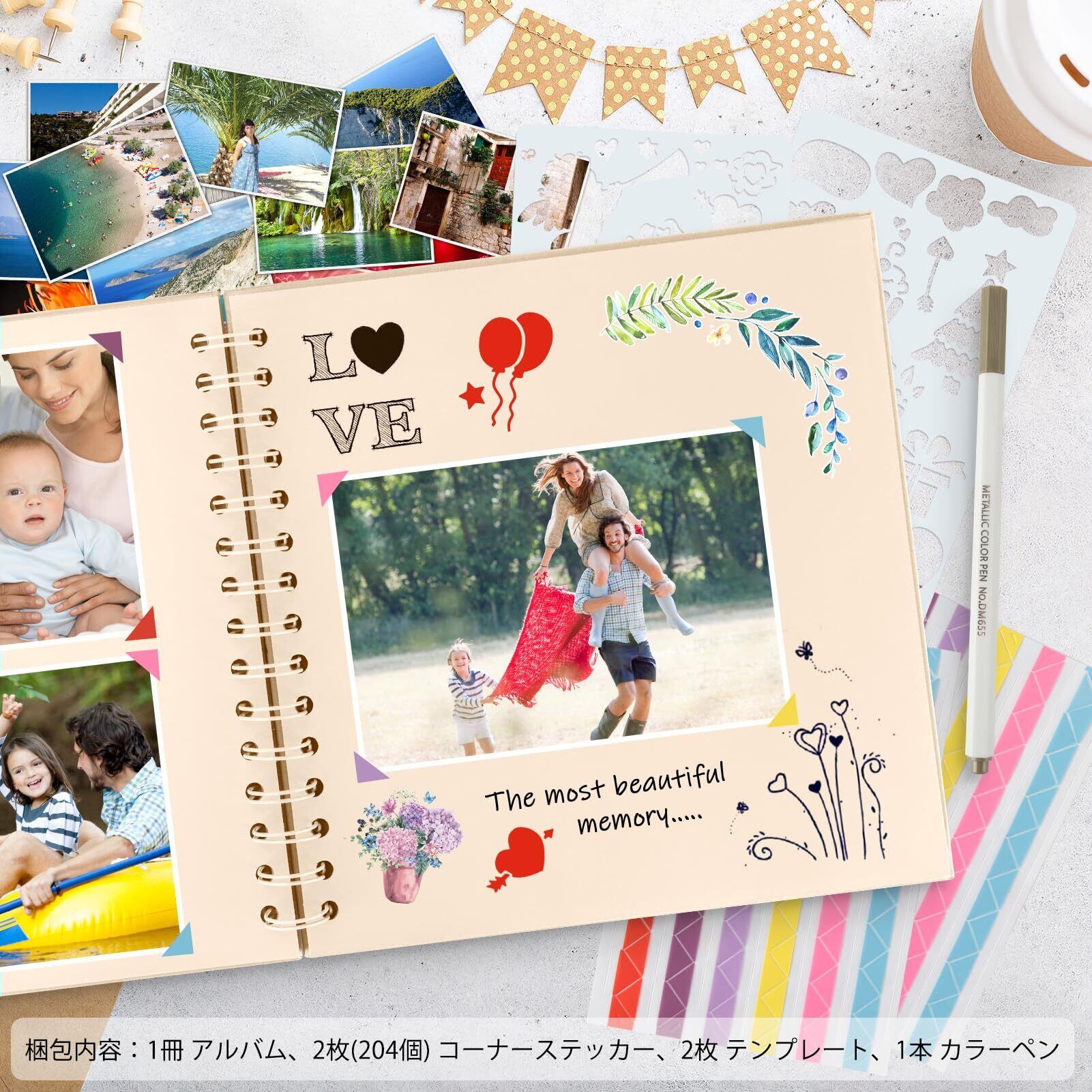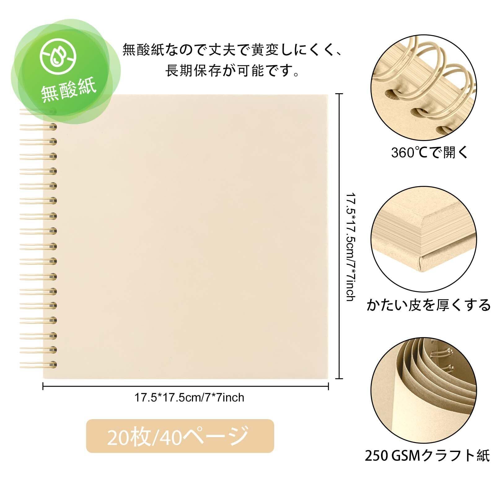 【商品仕様】アルバムサイズ:17.5*17.5*1.5CM 台紙サイズ:17*17CM(20枚/40ページ)梱包内容:アルバム×1冊、コーナーステッカー×2枚(204個)、テンプレート×2枚、カラーペン×1本。DIY フォト アルバムのさまざまなニーズを満たすさまざまな DIY 用品。