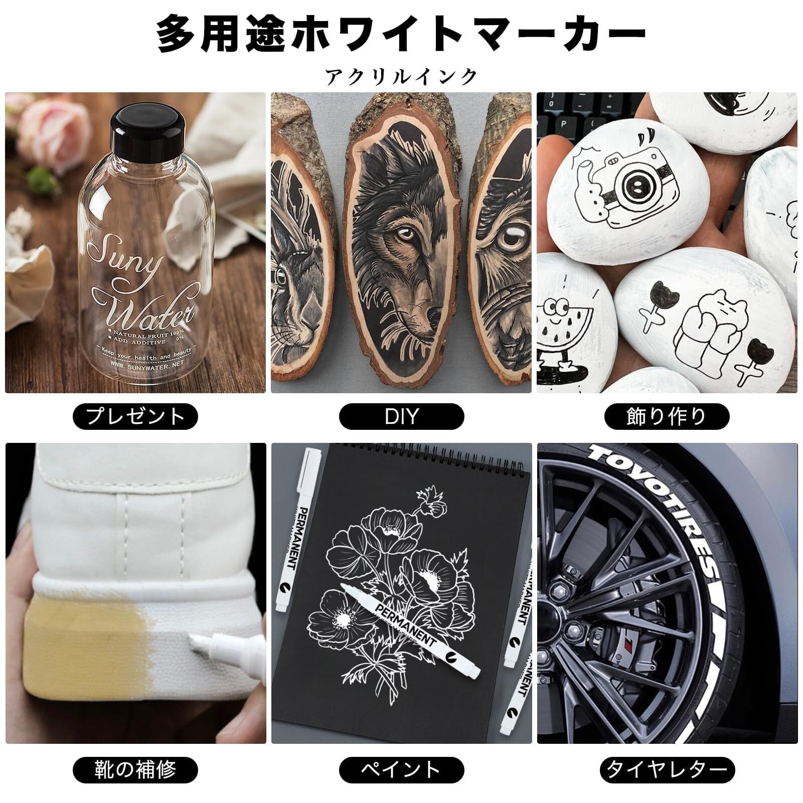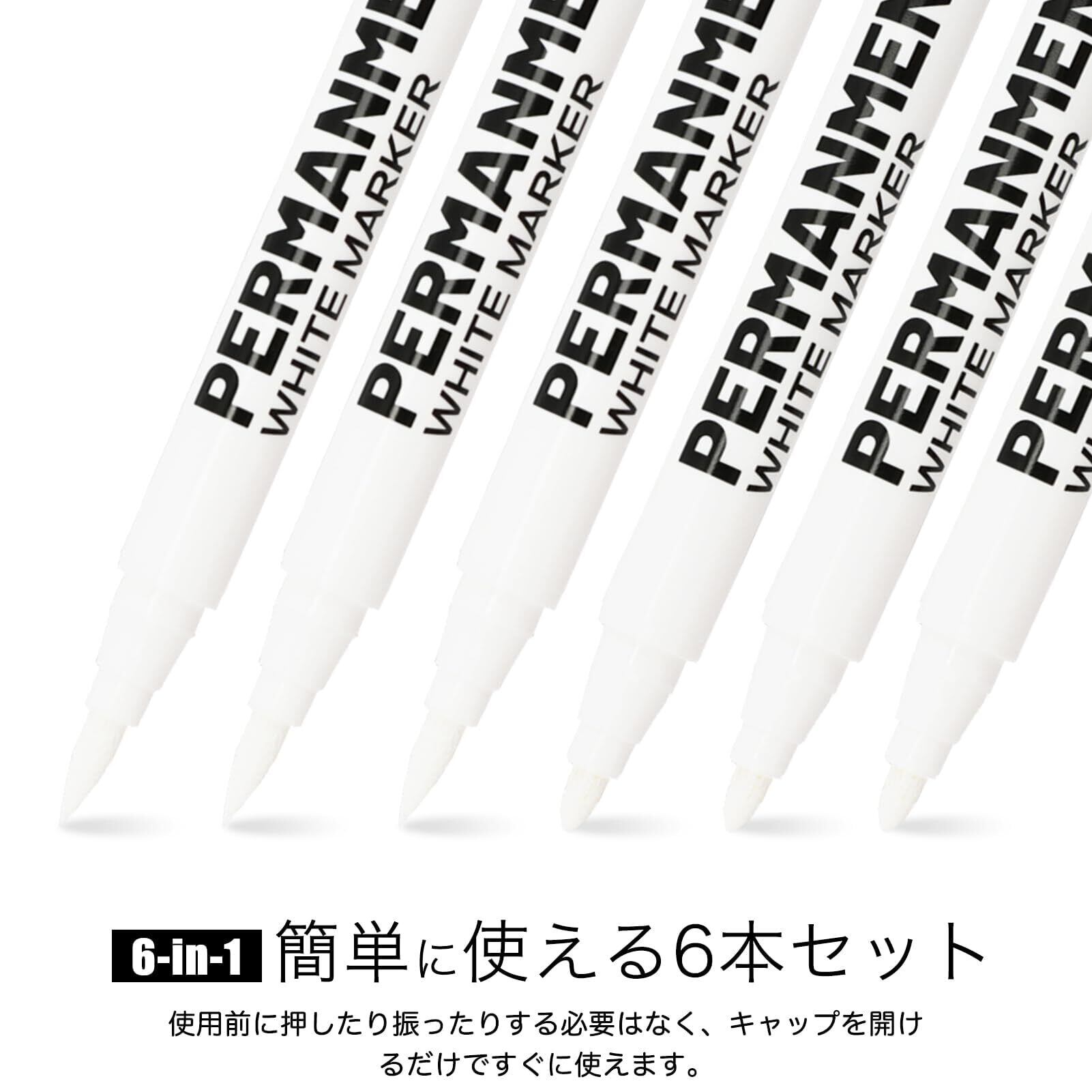 白ペン ホワイトマーカー 2種類の先 6本セット 耐水インク 0.5~5mm線幅 水性アクリル 白筆 名前 タイヤホワイトレターペン タイヤマーカー 漫画 布 石 セラミック ガラス 木材 金属 タイヤ用