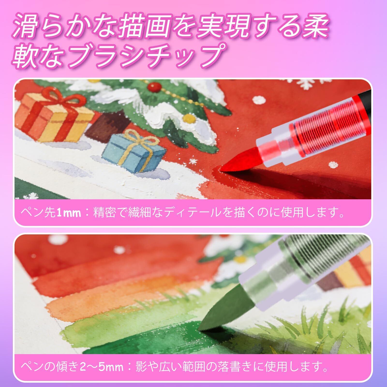 【直液式タイプ】当社のブラシチップマーカーには、自動インクコントロールシステムが搭載されています。密度の高いペン先はインクの流れをコントロールし、インクの切れや漏れを防ぎます。また、柔らかいペン先はスムーズなインクの流れを確保し、ペン先上部の真空状態を解消し、圧力を自動調整することで、よりスムーズで安定したインク供給を実現します。これらのアクリルペイントマーカーセットは、インク残量を簡単に確認できるインク残量ウィンドウも付いています。