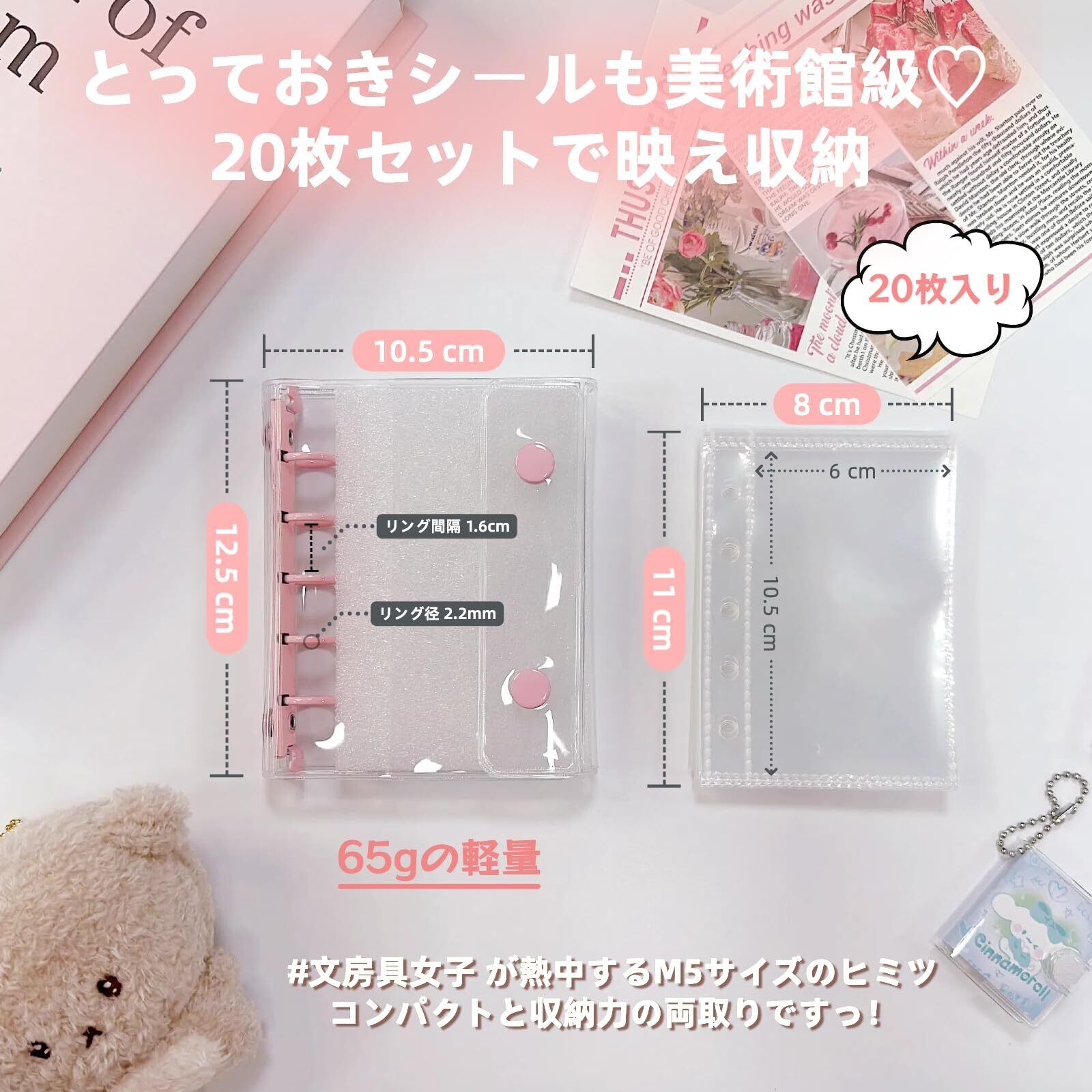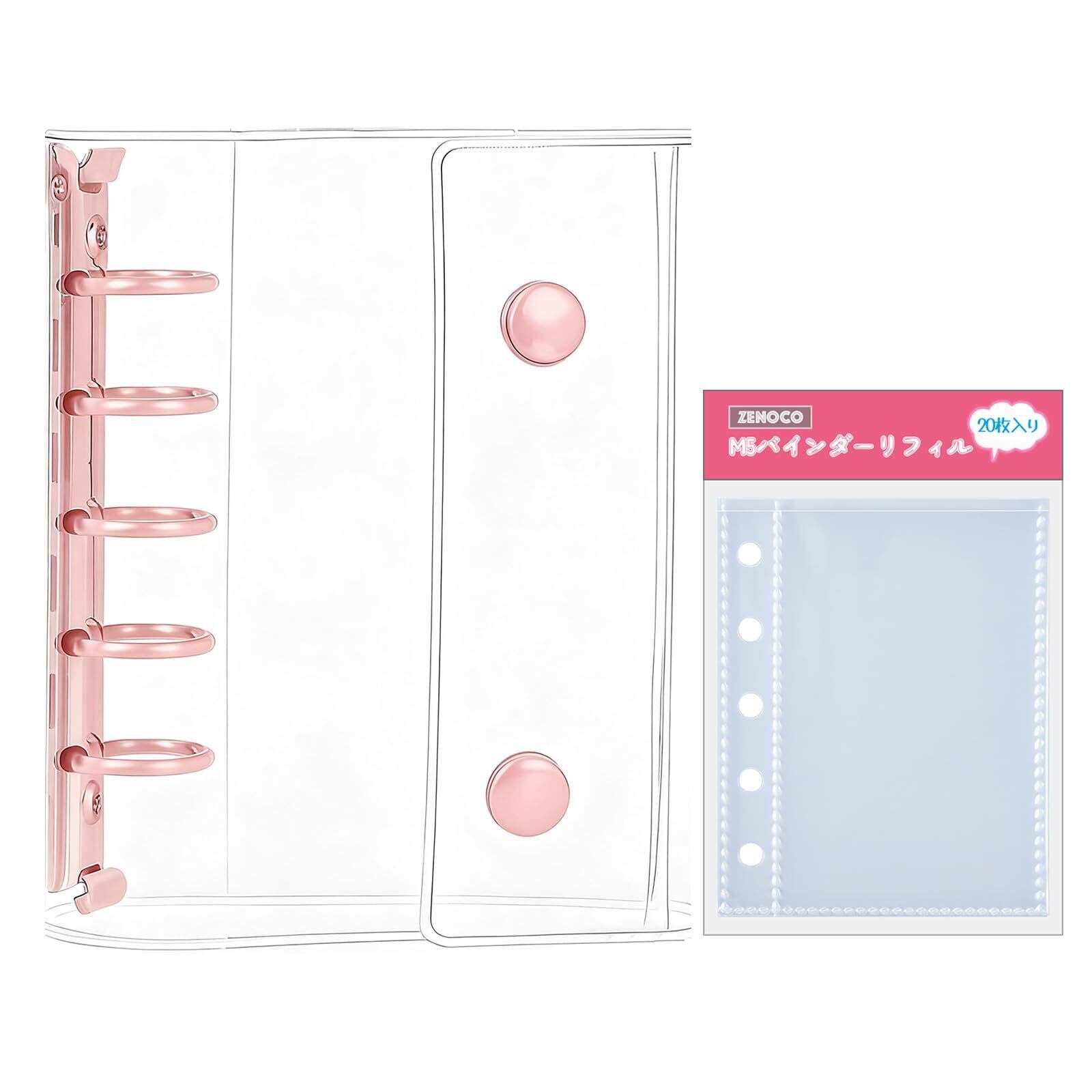 zenoco シール帳 透明バインダー 推し活グッズ m5 マイクロ5 女の子 はがせる 5穴 シール収納 厚め 台紙付き(リフィル20枚セット・ピンク)