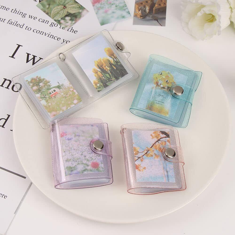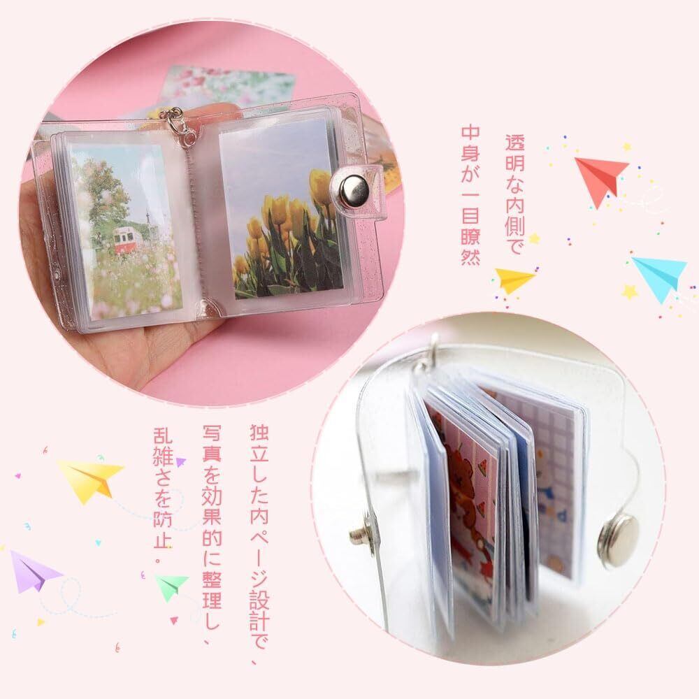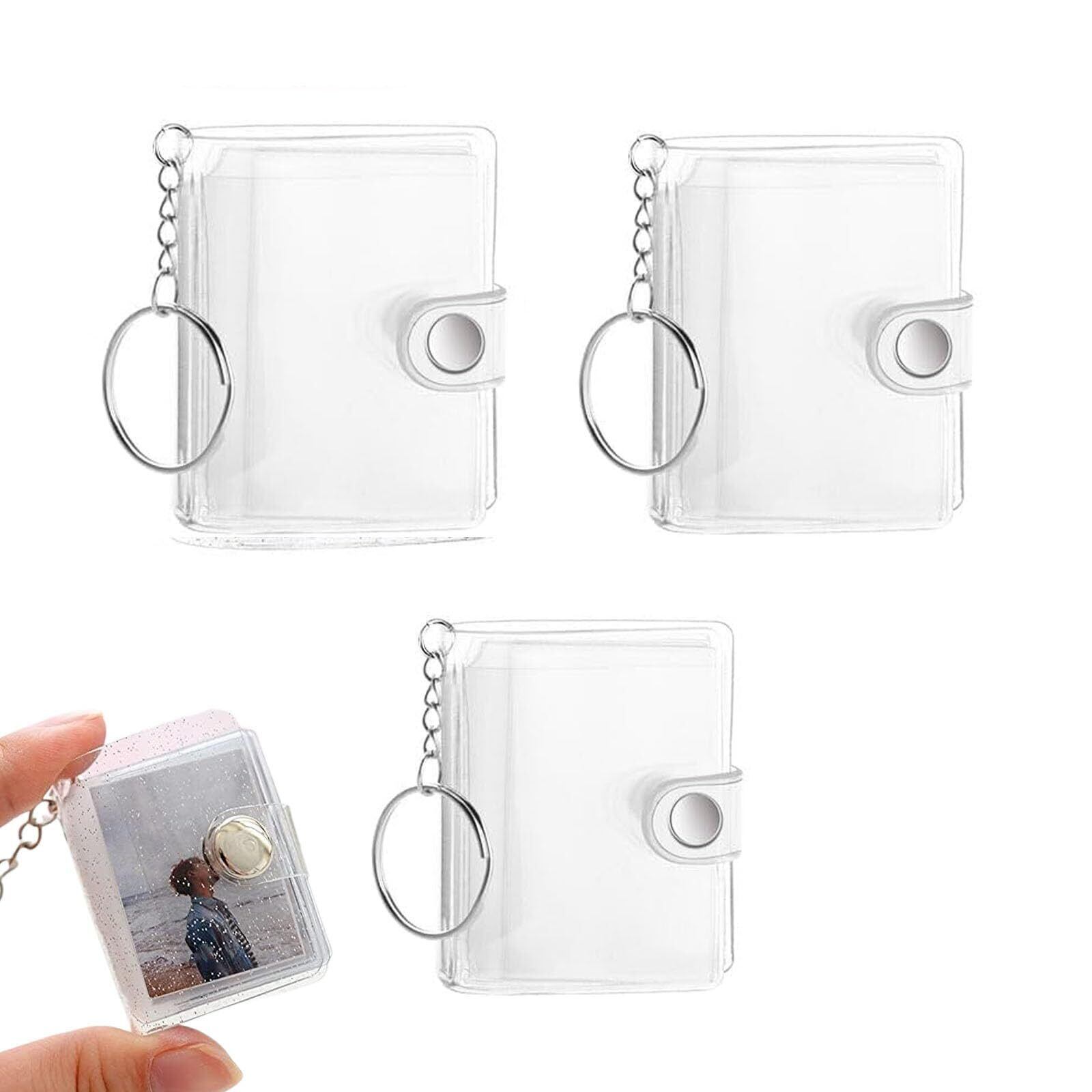 ミニアルバムキーホルダー スモールフォトアルバム 2インチ 3個パック 可愛い 女の子 シール帳 子供 バインダー 1冊には20枚収納 小型 DIY 手作り 写真入れ 思い出 結婚式 バレンタインギフト (透明 3個セット)