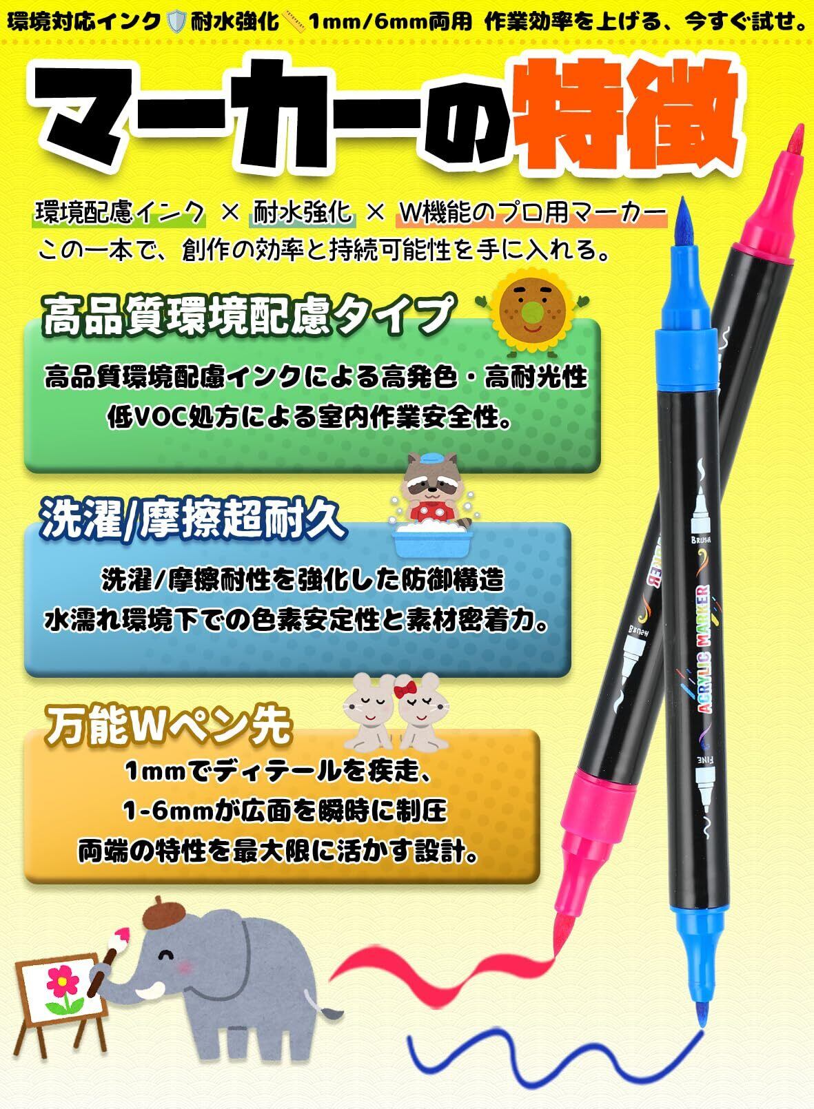 アクリルマーカー セット 30色 カラーペン 水性ペン 毒性無し 防水 速乾 耐光 太細両端 プラ板/ガラス/陶器/木材/布/石に書ける ハンドメイド DIY 子供用 学校 絵画教室 プレゼント