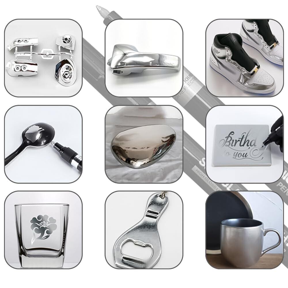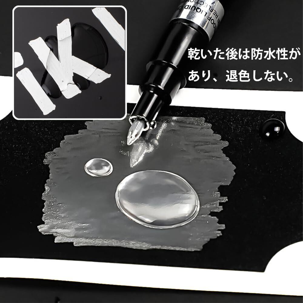 【商品仕様】シルバーアートリキッドミラークロームメッキマーカー、0.3cm、0.45cmの2つのペン先サイズで、描いた線の幅は約0.7mm、2-3mmである。(誤差がある可能性があり、実物を基準とする。)様々な創作ニーズに対応します。