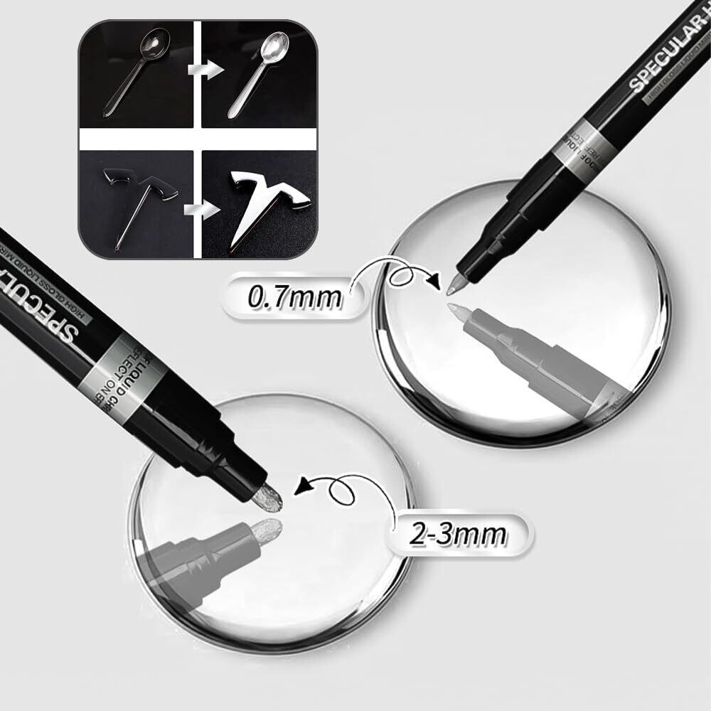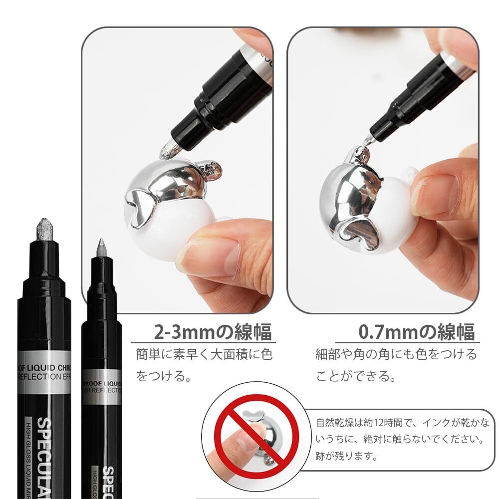 クロームメッキマーカーペン DIYハイライトペン 線幅0.7mm 3.0mm 防水 退色防止 耐摩耗 鏡面効果 強い光沢感 メタルマーカー 模型 補修用 塗り絵 ペイント用 2個セット