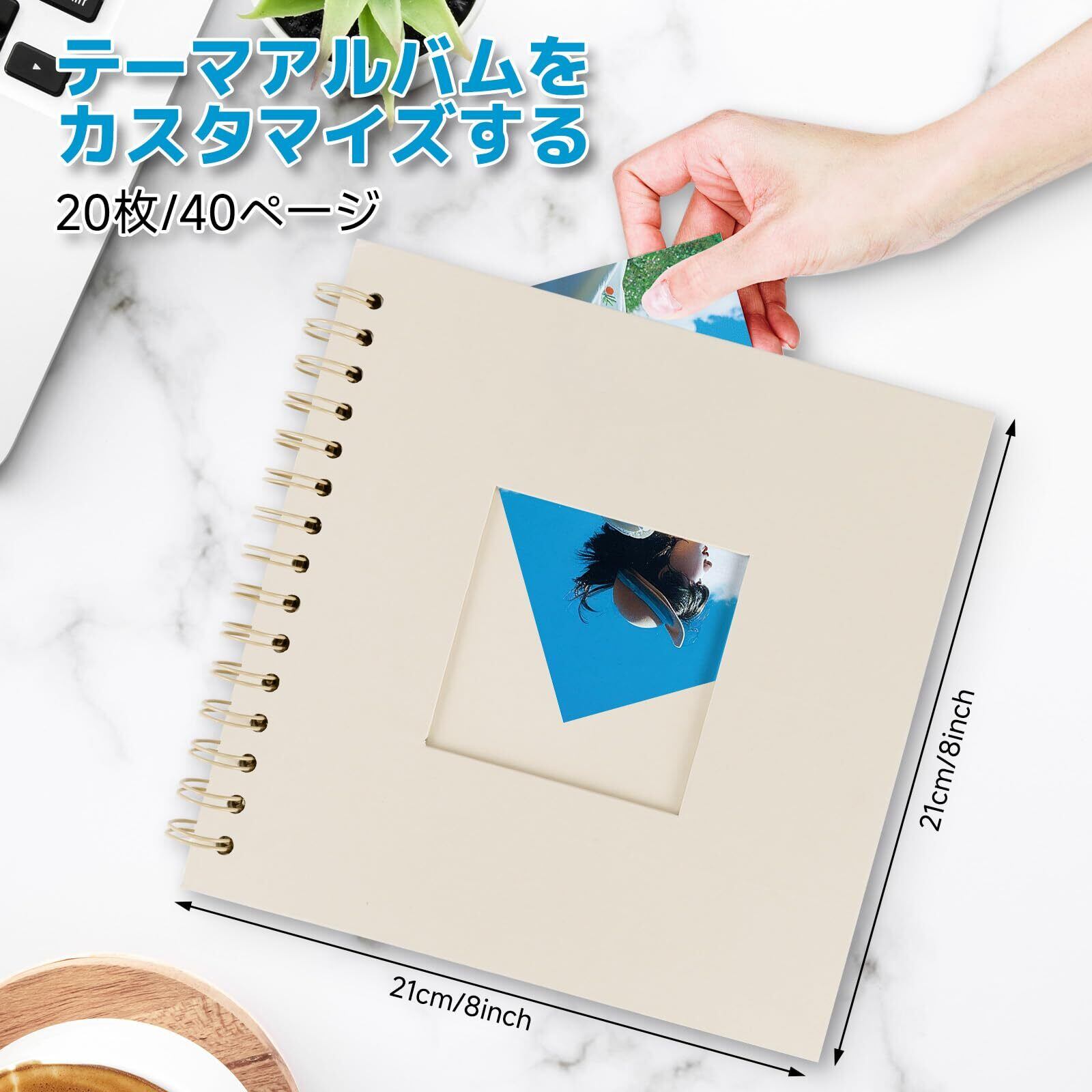 【アルバムデザイン】写真ウィンドウ付きのスクラップブックアルバム。お気に入りの写真を入れて、DIYアルバムカバー。360 度回転可能な金属コイルは平らに置くことができ、見やすく貼り付けやすいです