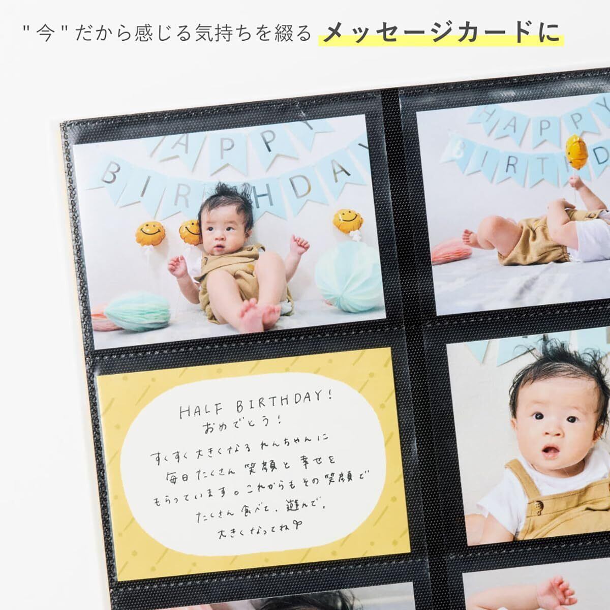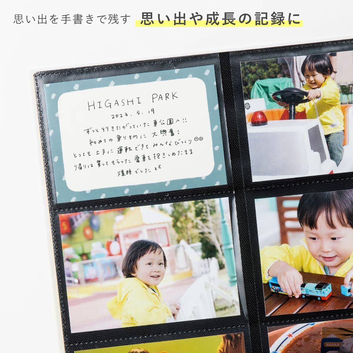 大切な思い出を手書きで残す「ログカード」 大容量アルバムシリーズから新しいデコレーションカードが登場! 思い出の写真に添えて、思い出を手書きで記録できる「ログカード」。 我が子への想いから日々の成長の記録まで、「ログカード」を使うと特別感がアップ。 大切な思い出が詰まった素敵なアルバムに。