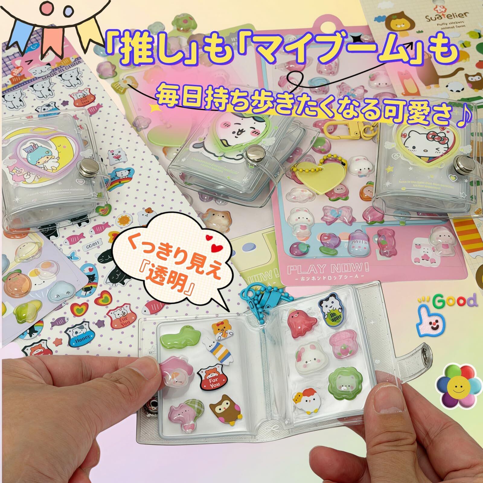 【シール帳 ミニ】ミニステッカーアルバムはPVC素材を採用し、柔らかく耐久性に優れ、変形しにくい。大切な写真を効果的に保護します 透明シートでシールが見やすいデザイン: 透明なシート採用で中身のシールが一目瞭然。シール帳 透明の特長を活かし、お気に入りのシールをすぐに見つけられる便利さ。