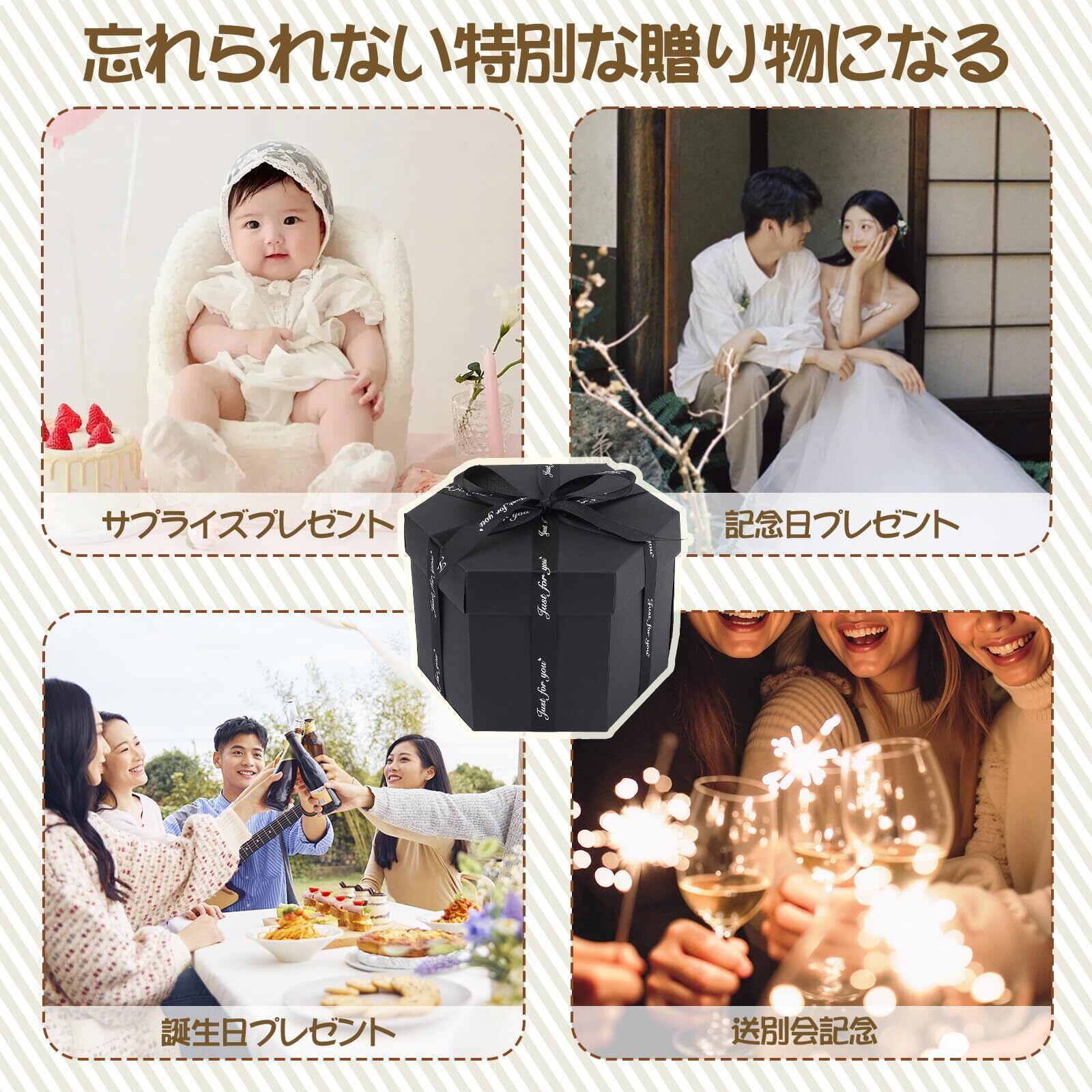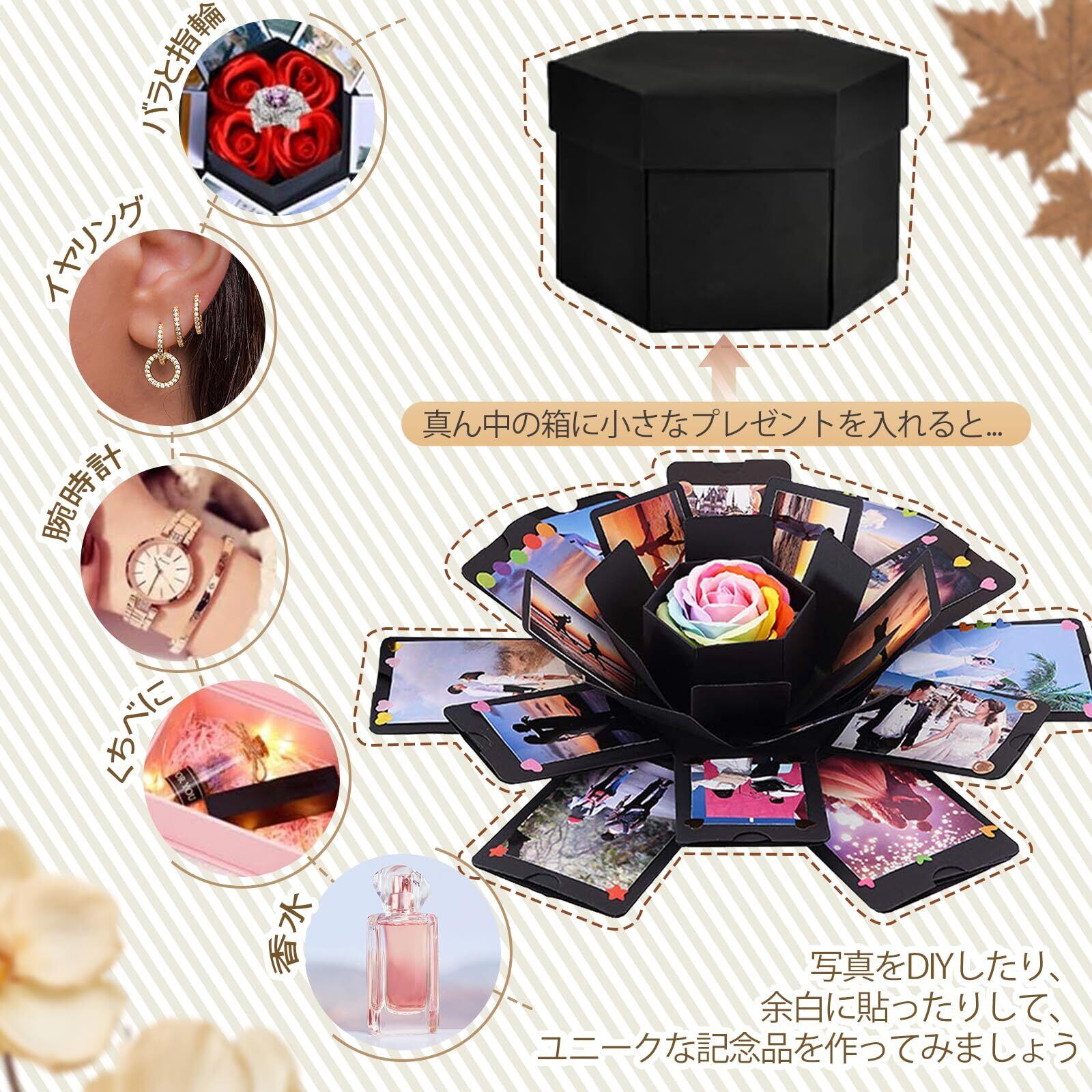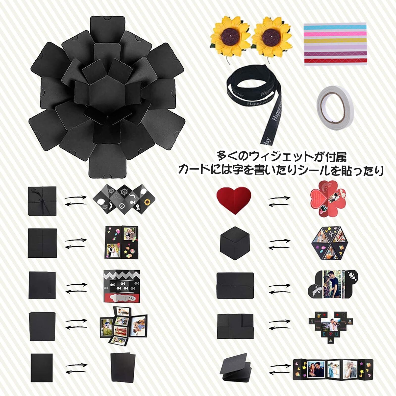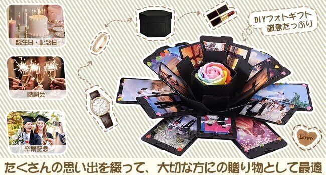 RECUTMS サプライズボックス アルバム プレゼントボックス 手作り クリエイティブ DIY スクラップブック 爆発ボックス ギフト ラブメモリフォト 贈り物 クリスマス 彼女彼氏 誕生日 記念日プレゼント 写真収納(黒い)