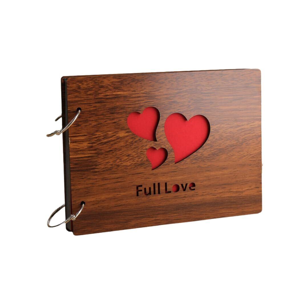 【オリジナルアルバムの作成に】自分だけのオリジナルアルバムを自由にDIYできる木目調のハートデザイン型フォトブックです。ぜひ大切な思い出を「世界で一つだけの手作り写真集」として保存してください。
