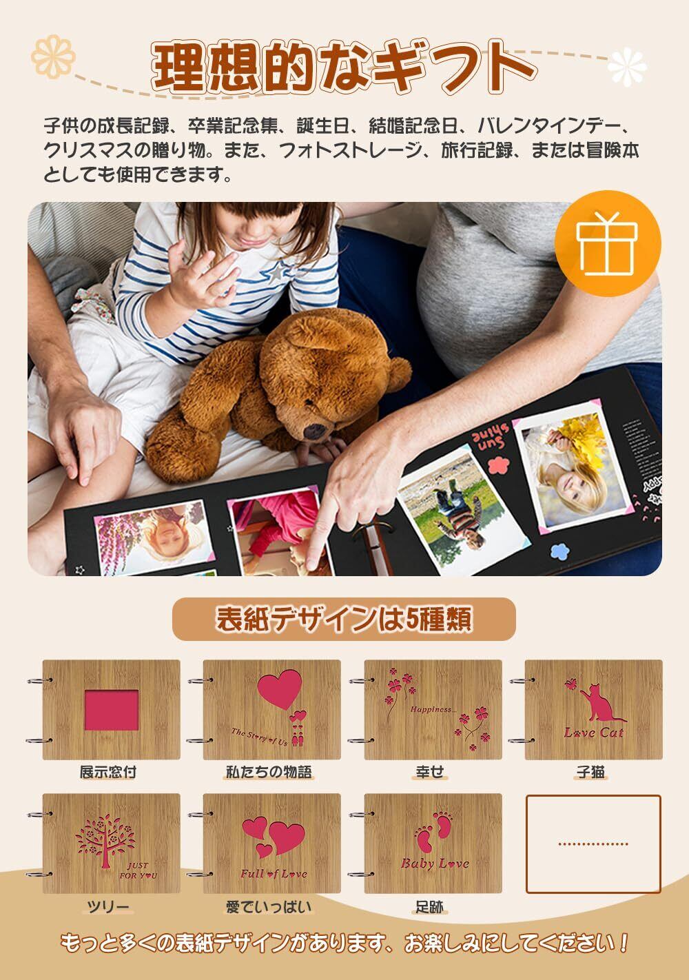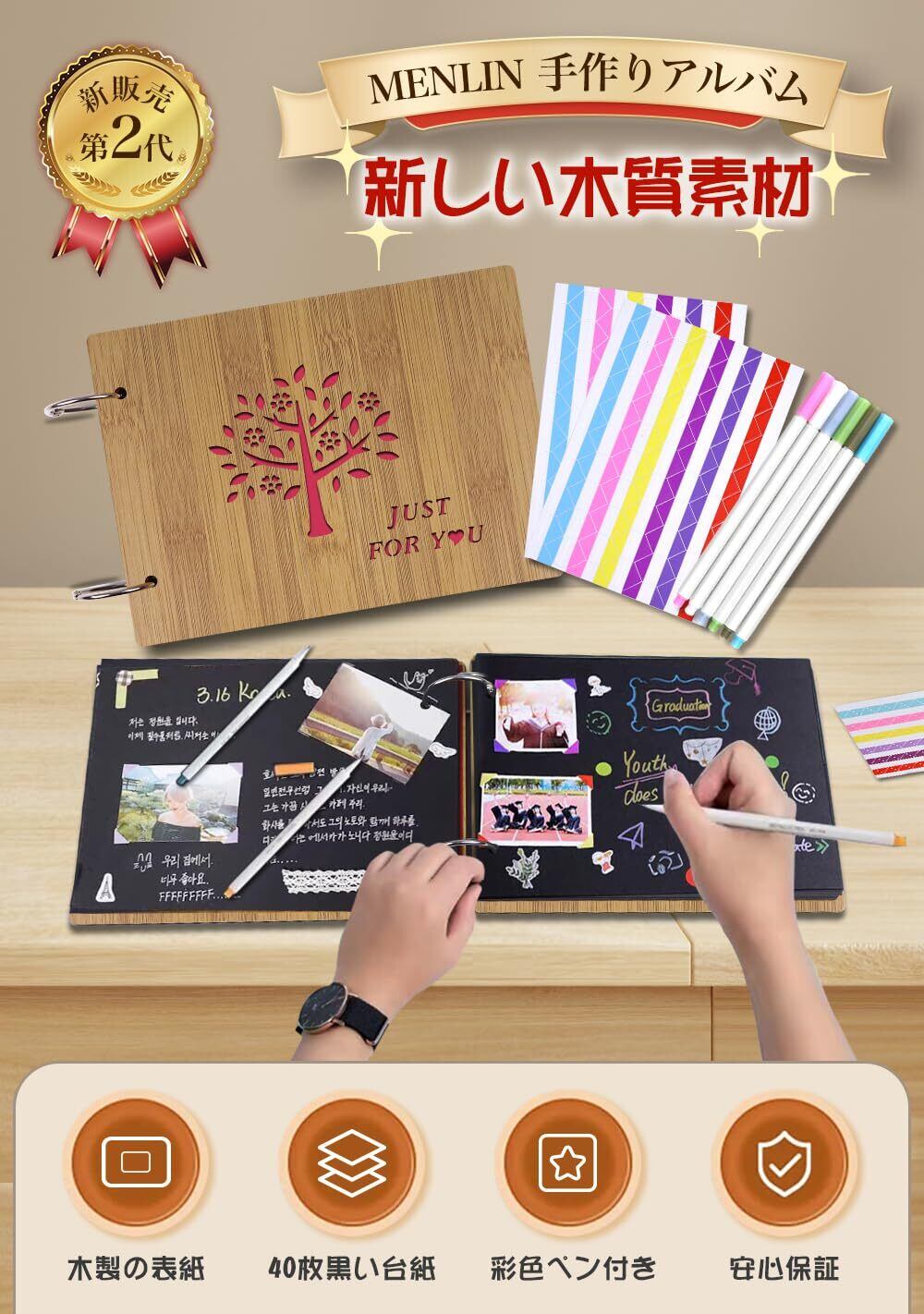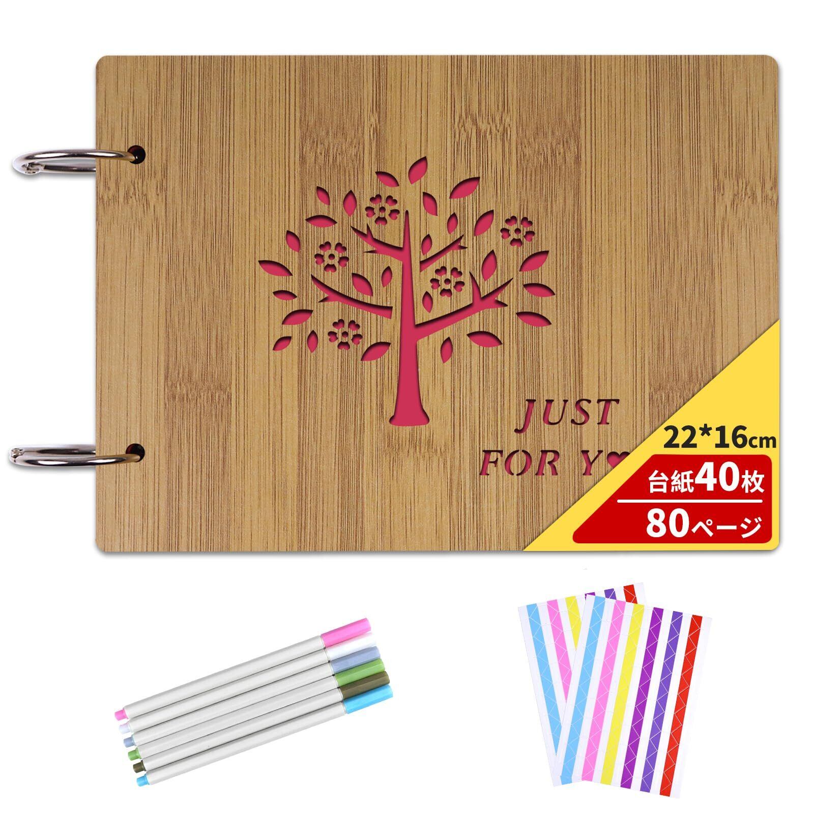 アルバム 手作り 木製 張るタイプ 寄せ書き スクラップブック 大容量 DIY 写真アルバム フォトブック 記念日 結婚式 誕生日 プレゼント(台紙40枚80ページ 22x16cm ツリー)