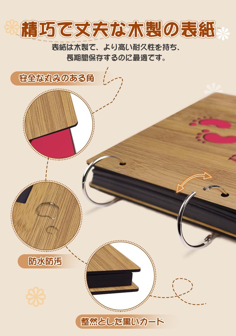 【手作りアルバム】これは自由にDIYできる貼り付けタイプの手作りアルバムです。表紙は木製で、より高い耐久性を持ち、長期間保存するのに最適です。また、贈り物としても最適です。