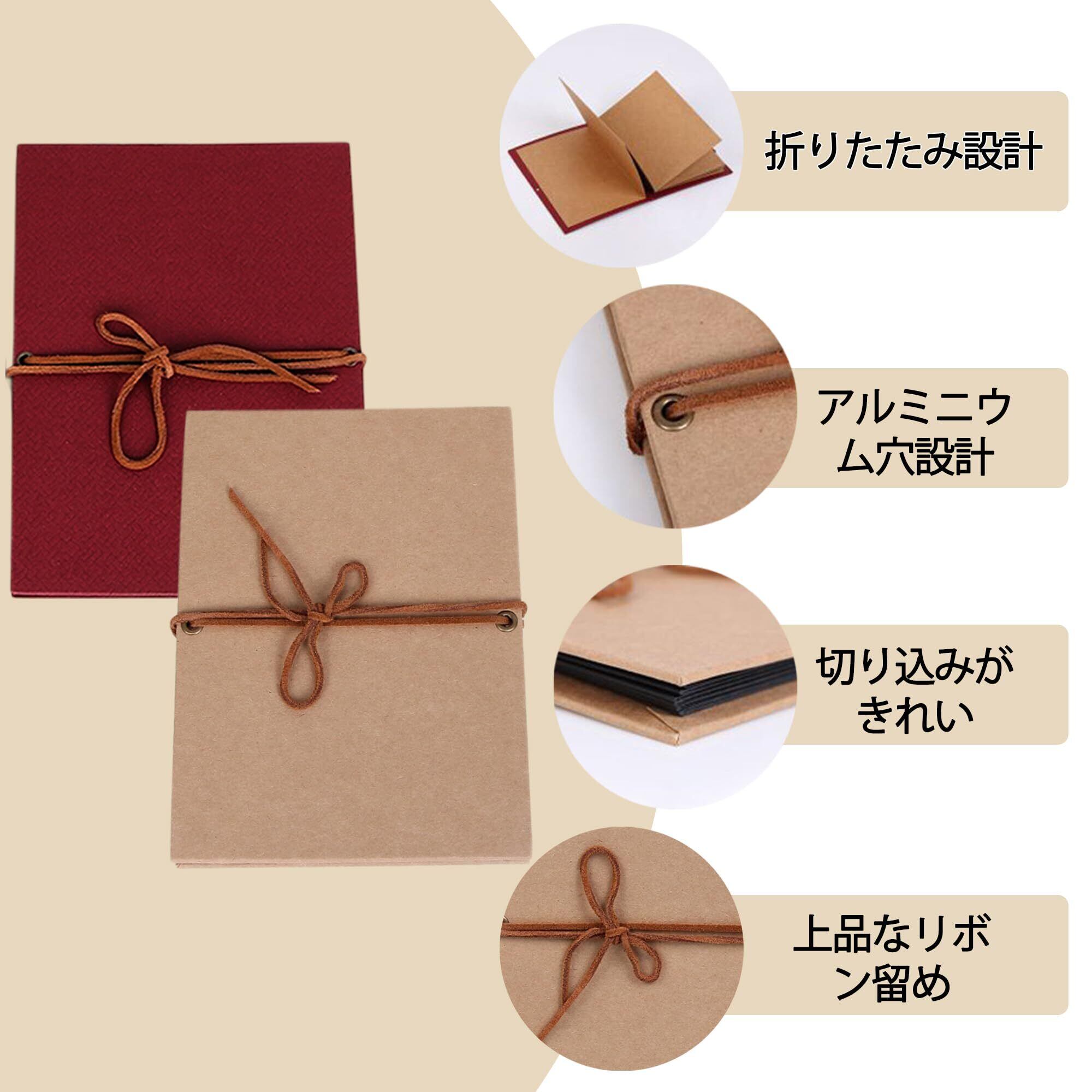 手作りアルバム DIY 折りたたみ式 アコーディオンタイプ スクラップブック フォトアルバム 大容量 耐久性 クラフト 写真集 台紙製 記念日 結婚 卒業 誕生日 お祝いプレゼント 贈り物 多色選択可 (表紙は赤色、内ページは黒色)