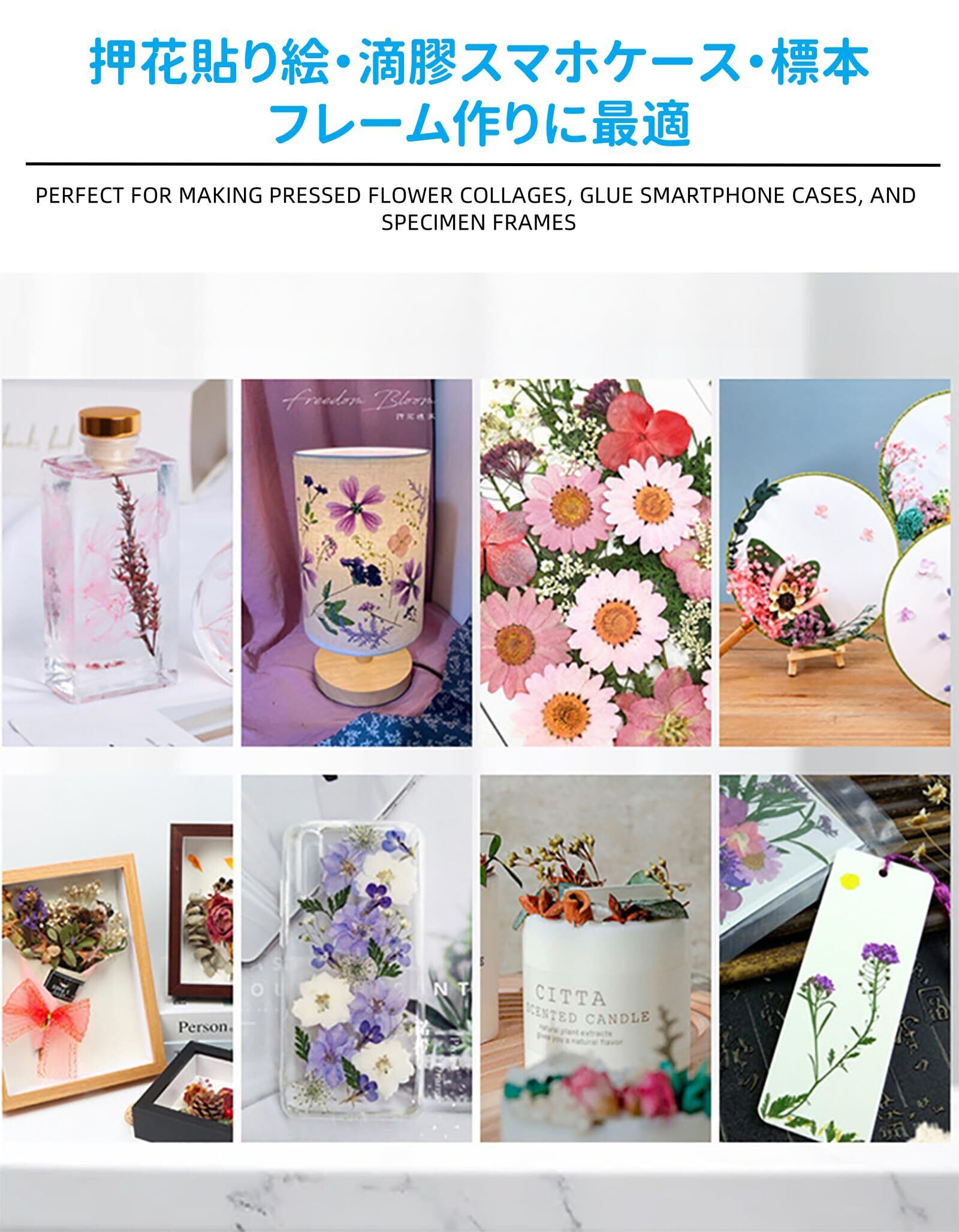 【時空を封じる工芸】3Dレジンアート専用花材パック、厚み調整済み花弁が樹脂封入時に浮き上がり防止。スマホケース・時計文字盤・アクセサリー鋳型用に最適化。紫外線防止加工で褪色せず、思い出を透明樹脂に永遠に保存可能な博物学者的素材セット