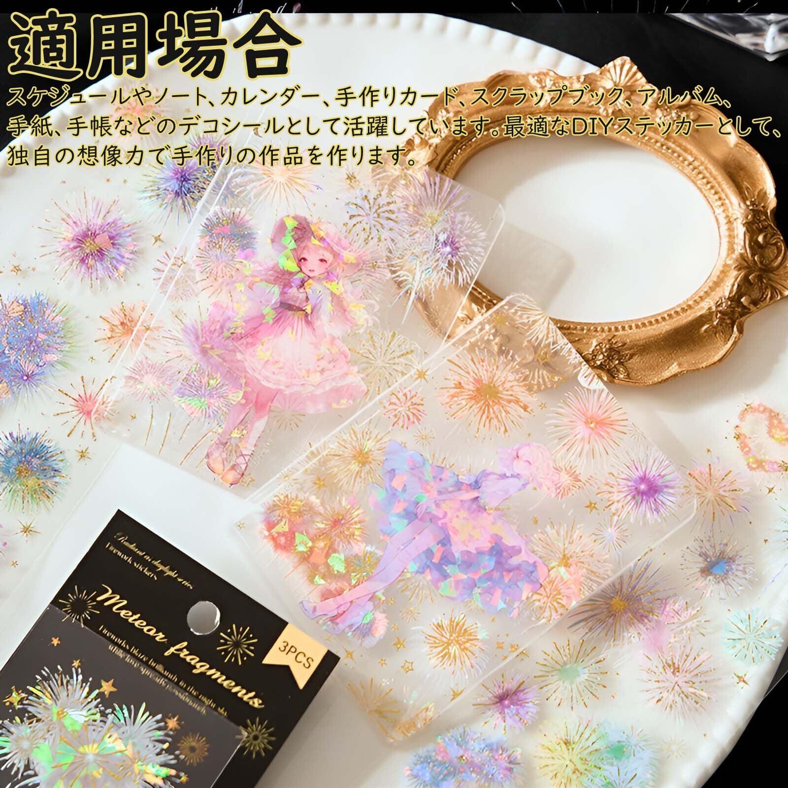 多用途:花火ステッカーはノート、日記帳、アルバム、便箋、カードなどの装飾に利用でき、スマートフォンやノートパソコンなどの電子機器にも装飾可能です。応用シーンが豊富です。