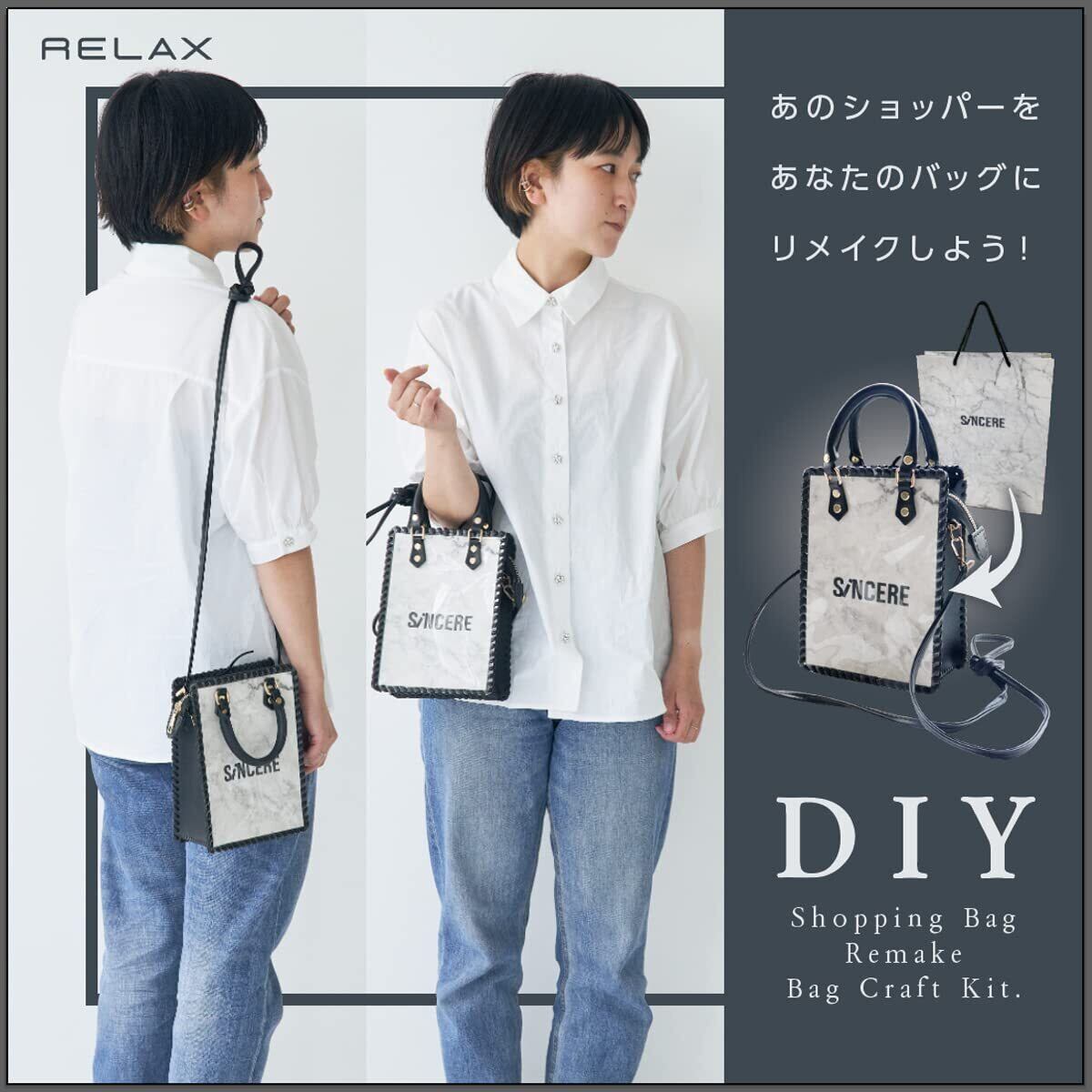 ショッパー リメイク 2way レザーバッグ クラフトキット 紙袋 DIY レディース ハンドメイドキット 工具付き (M, ブラック)